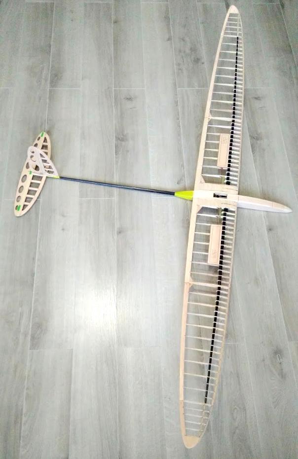 Truly excellent kit, the laser cutting being the best I have seen. With an eliptical wing plan and tapered carbon fibre tube spars the laser cutting had to be spot on - and it was, everything fitted. All materials are top quality. Mine came out slightly heavy at 475 grams but I made no effort to keep the weight down as I wanted to use it more as a light wind slope soarer. I flew it today in a 'bit of a breeze' and as I suspected in the conditions, the performance was better with the ballast fitted. In very light air it will be fine without the ballast - it flies very well indeed. Spoilers are very effective too. I may even invest in a bungee!