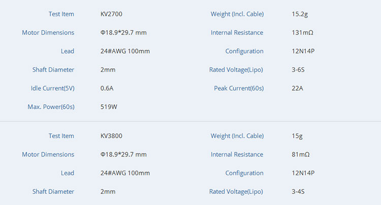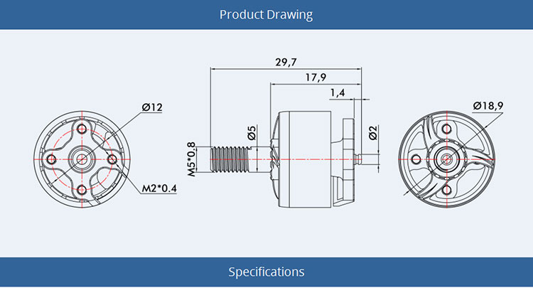 - Motor Dimensions (Dia.*Len): F18.9×29.7mm