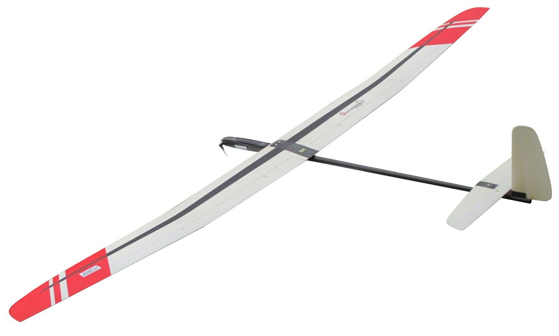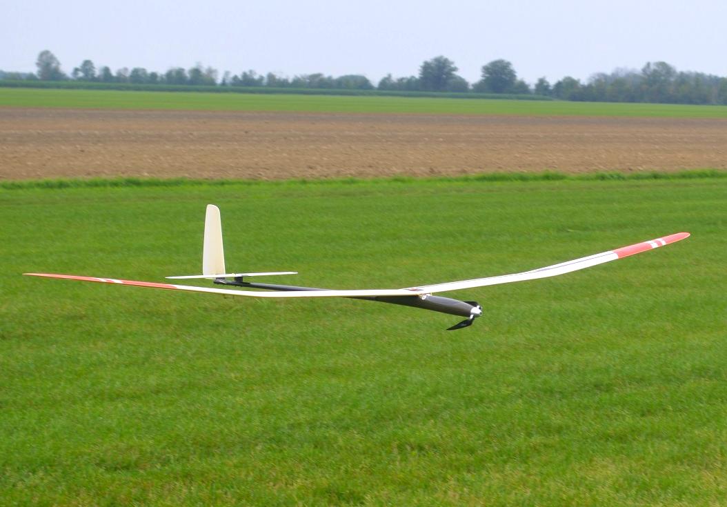 This is an excellent thermalling glider. It penetrates well for a light machine and can fly tight circles to work small patches of light lift. With strong thermals around, it needs to be flown faster to avoid pitch upsets and stalls - this is something I am learning! It is, however, quite fragile and the surfaces are easily damaged if you are not careful. You need to be particularly careful of landing with flaps down! I had to move the servos from the pod to under the wing to achieve the required CG, even with the a very light flight pack - the tail is very light.