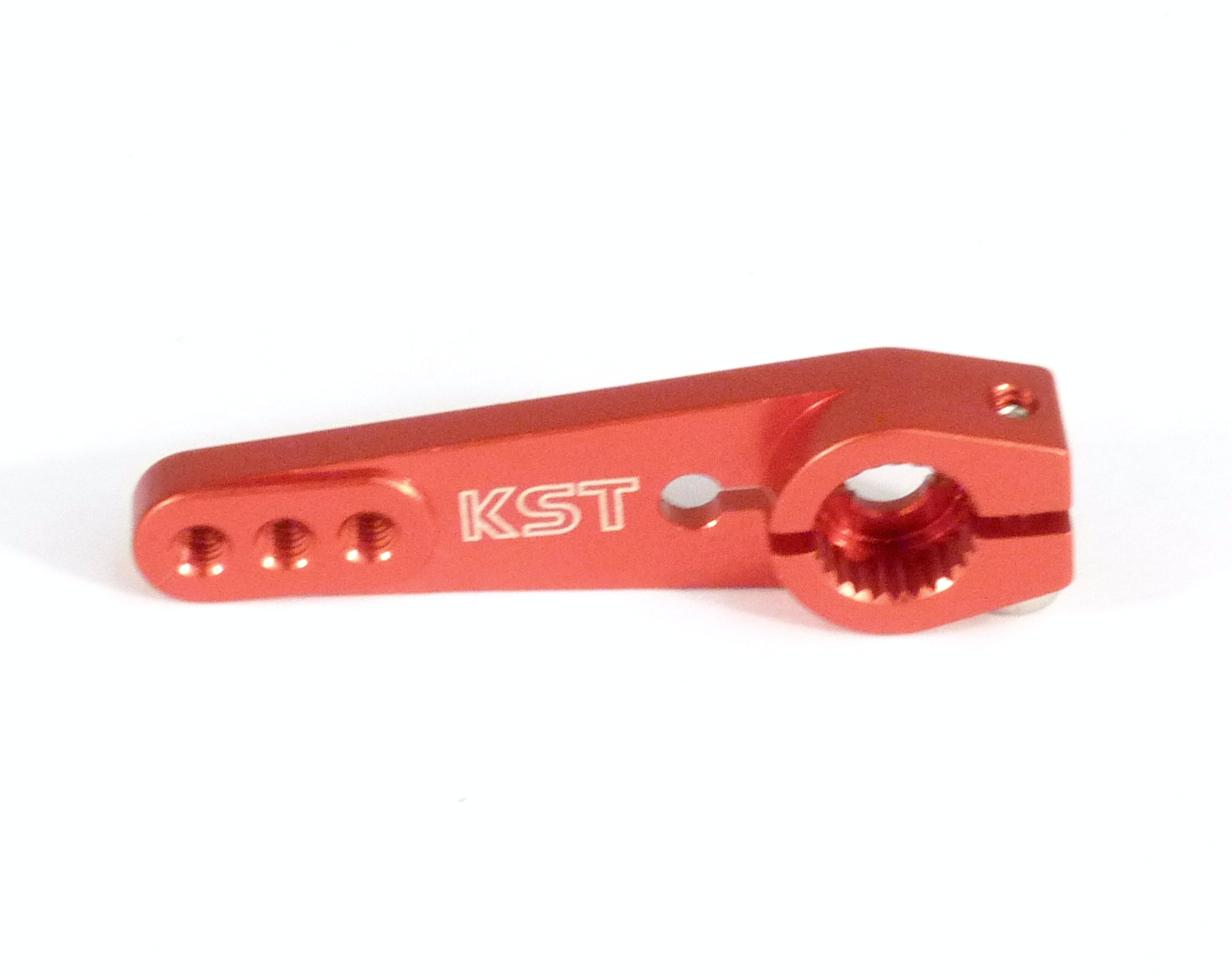 One strong aluminium servo output arm (horn) that fits KST servos with a 6 mm output spline. This is used on KST servos 15 mm thick and larger. Does not fit the KST X08 or X10 servos.