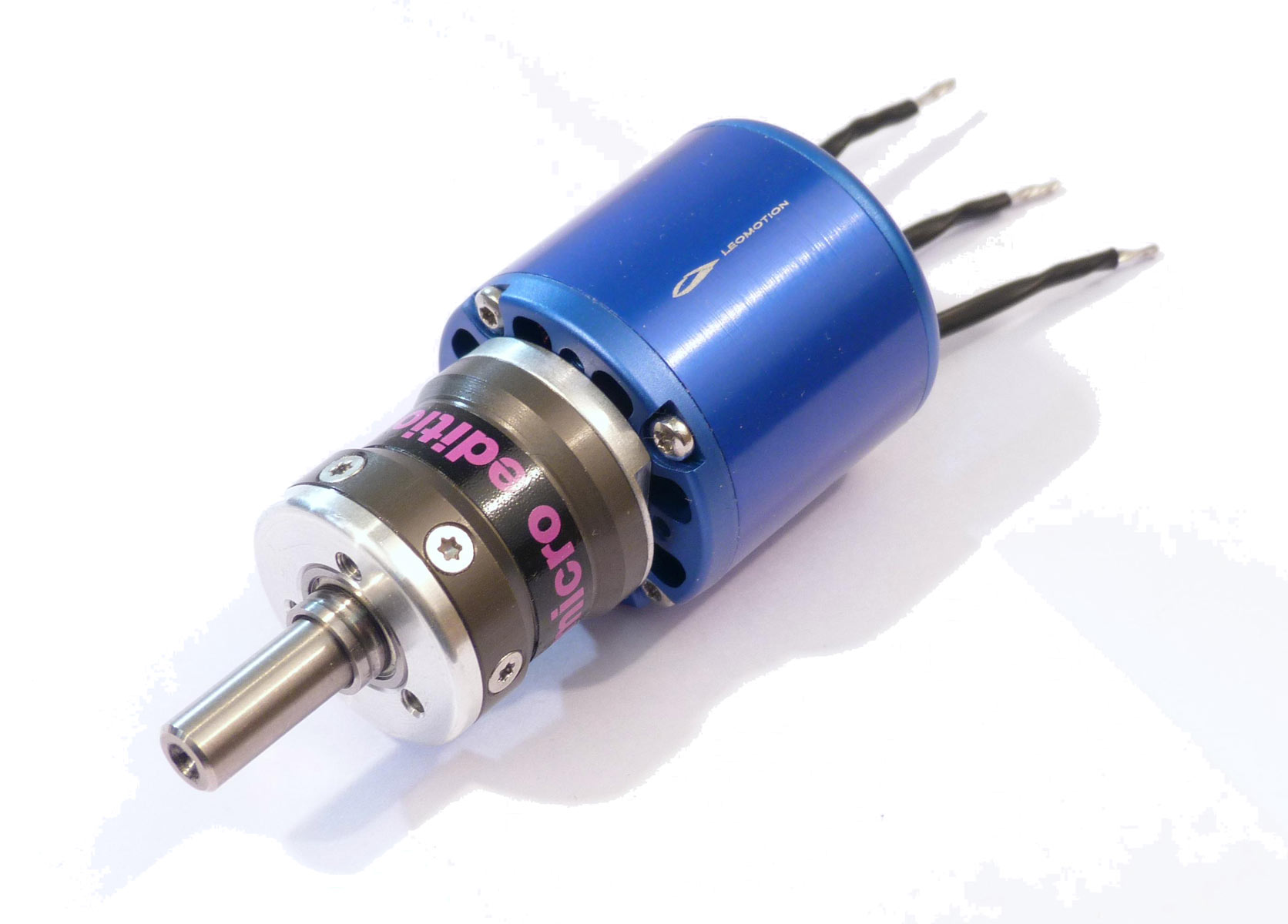 This powertrain consists of a Leomotion L3007 motor mated to a Reisenauer Microedion 5:1 gearbox. It weighs just 75g and is capable of 390W for 30 seconds on 3S LiPo batteries.