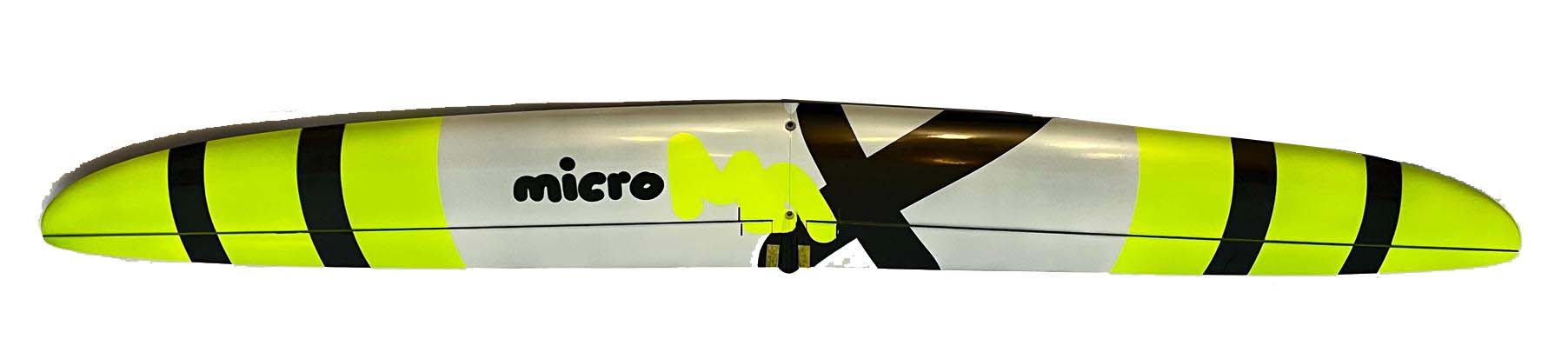 The MicroMax has flying surfaces beautifully made from spread carbon with a solid Rohacel core, to ensure its excellent surface finish doesn’t degrade with time. The fuselage is carbon fibre with a 2.4Ghz transparent glass nose section, to allow the receiver aerials to be kept internal. The fuse is tiny but has been designed to accept a custom ballast system, allowing the model's weight to be doubled. This very wide weight range allows the model to be used in most flying conditions, from light airs to strong conditions. For good DS performance we recommend the model is ballasted to at least 400g, preferably 500g to allow it to punch through the rotor turbulence. The wing is easily strong enough to cope with DS speeds at this weight.