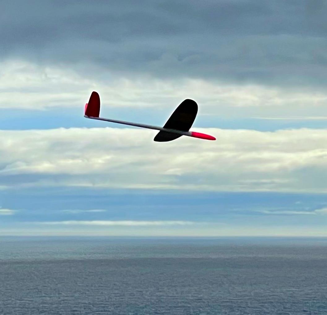 Although discus launched gliders can be fun on the slope on a low wind day they are too stable and too light to be optimal, especially when the wind gets up. Anton makes the very high performance Strike range of 1m DLGs, and was the first manufacturer to make a full house 1m DLG with performance to challenge 1.5m ships. Christophe's job was to marry Anton's highly regarded DLG technology with the performance requirements of a great slope soarer - high L/D at speed, well damped and linear control response even at extreme DS speeds, while retaining nice handling and low min sink to allow scratching when the lift dies.