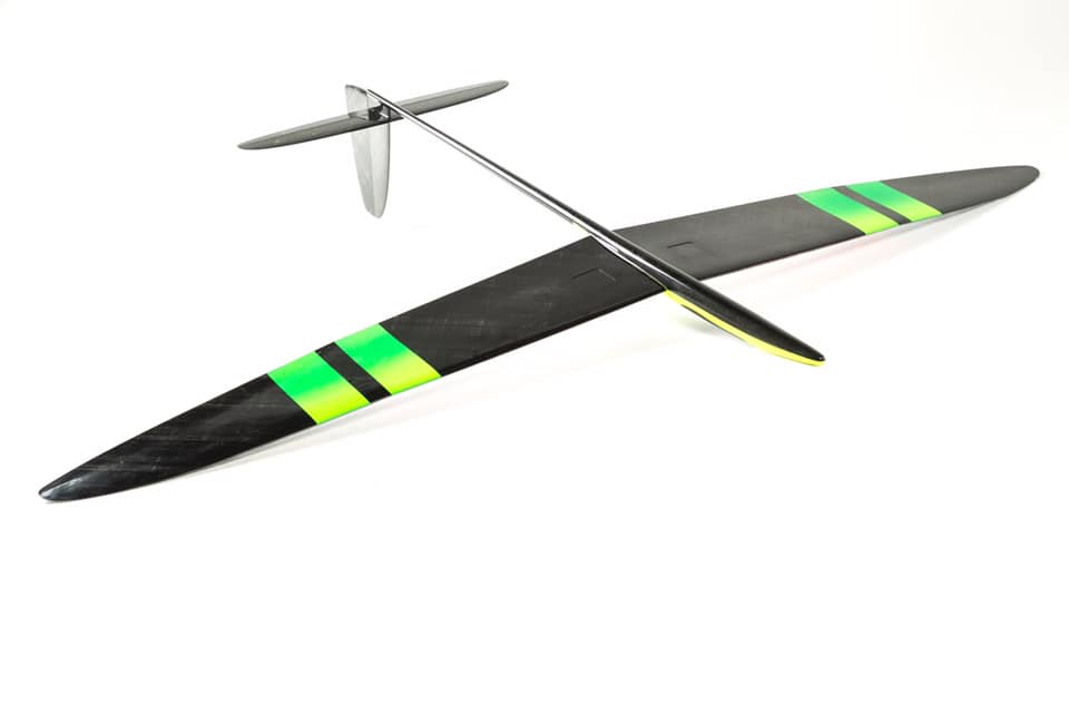 The two piece wing is molded using spread carbon skin over a Rohacell type foam core. The good surface finish and modern airfoils give it an excellent glide angle and speed range.