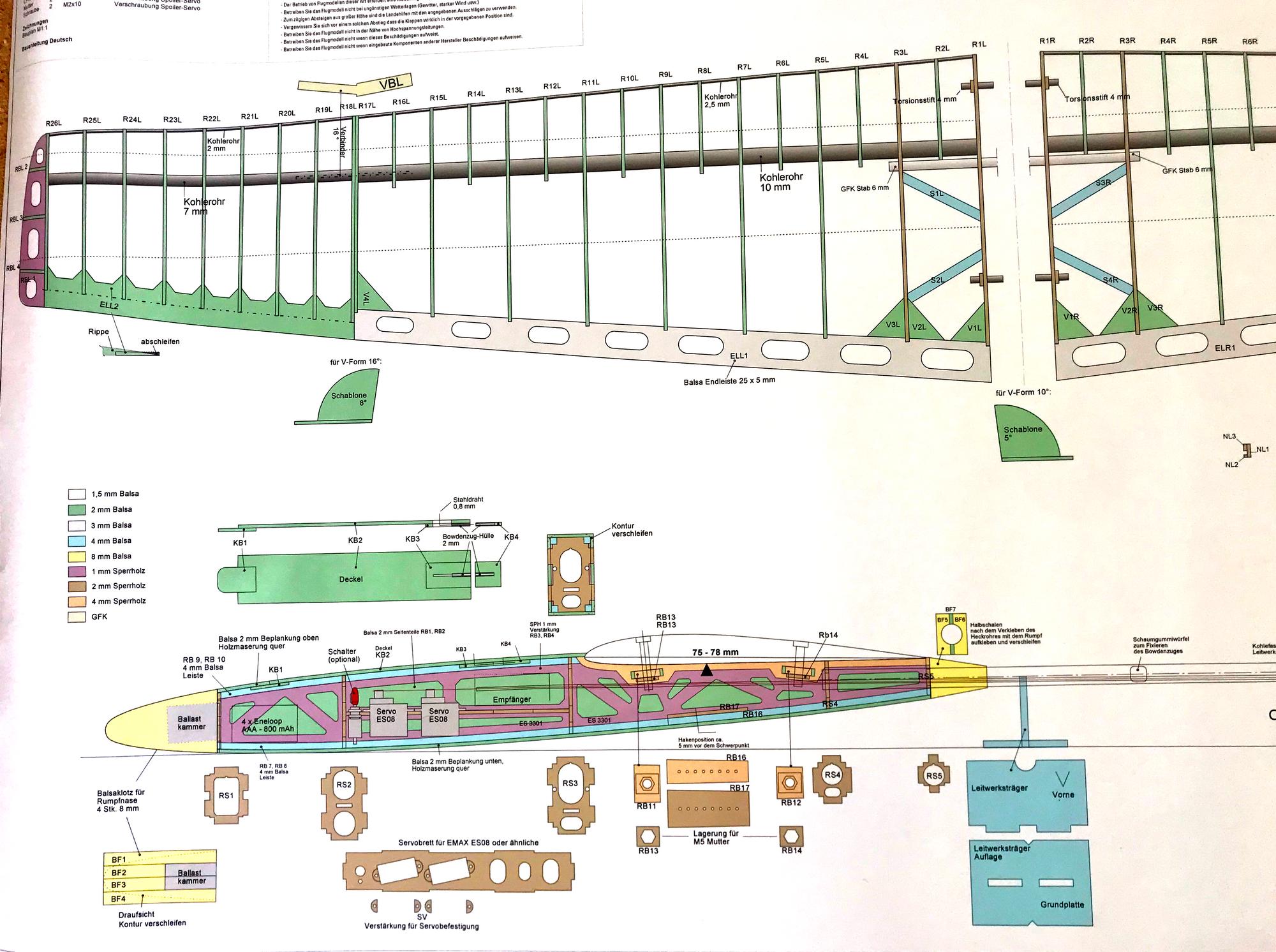 What is new? Besides the new lasercut production, the components are now numbered to ease building. Furthermore, there is an excellent multicolored construction plan and richly illustrated building instructions (in German only). Check out this excellent RC Groups build thread for good English language build info.