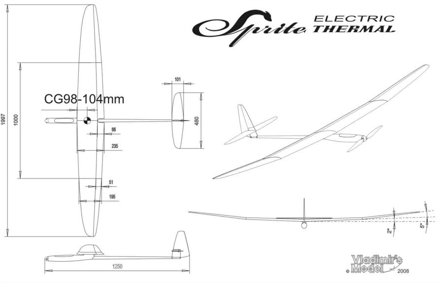 The Vladimir's Models Sprite Thermal-e is a very efficient fully molded 2m electric glider intended mainly for competitive and sport thermal soaring. The advanced design by Dr Mark Drela gives excellent performance as a highly competitive electric 2m thermal soarer. With its high strength and reasonably spacious pod the Sprite Thermal-e can be used with powerful electric power systems that require beefy batteries. Alternatively the Sprite Thermal-e low weight also allows smaller powertrains to be used, to maximise its thermal soaring capabilities.