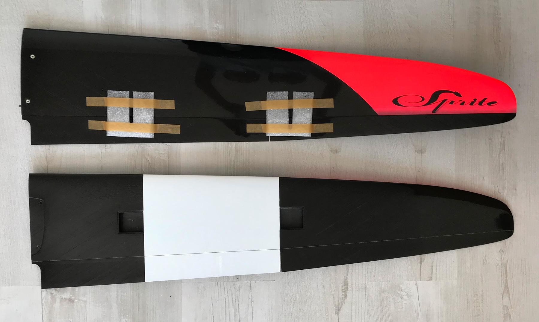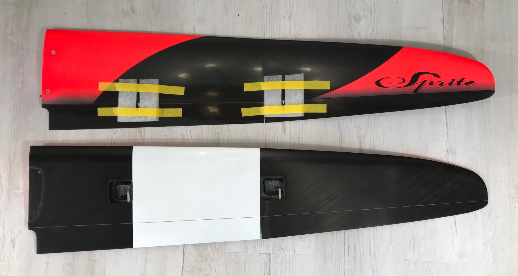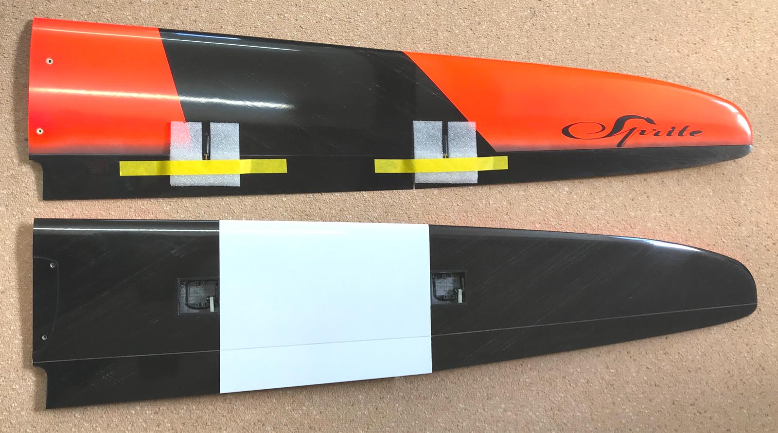 These are available in glass or spread carbon layup. The spread carbon Sprite Hot-e models are very strong and light. The models now come with wing bags so there is no need to order these separately.