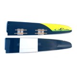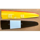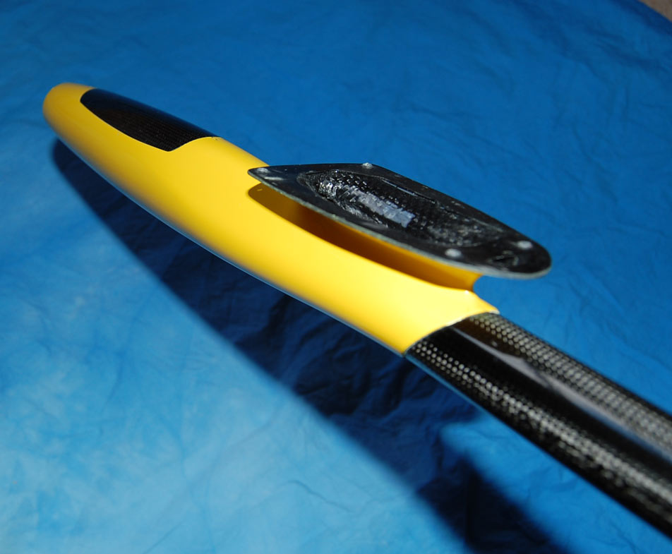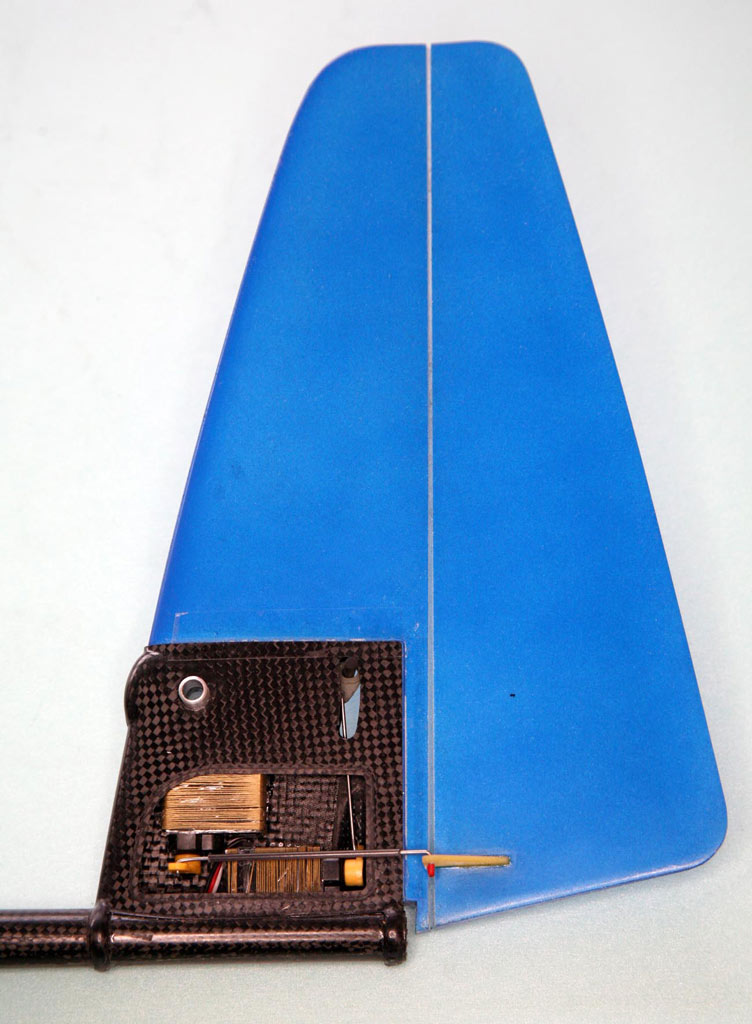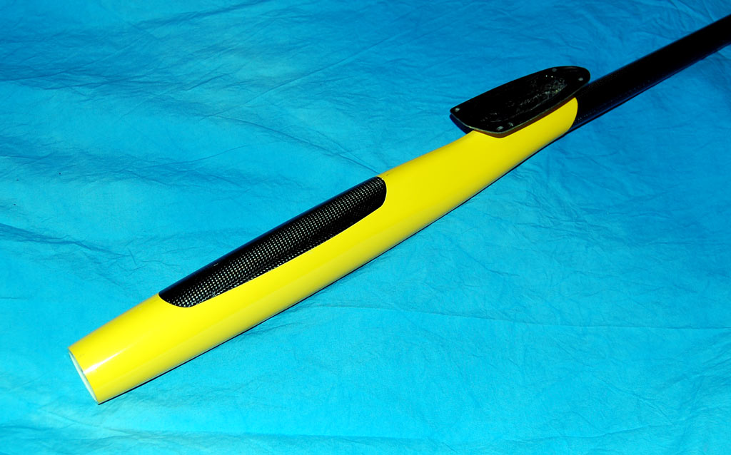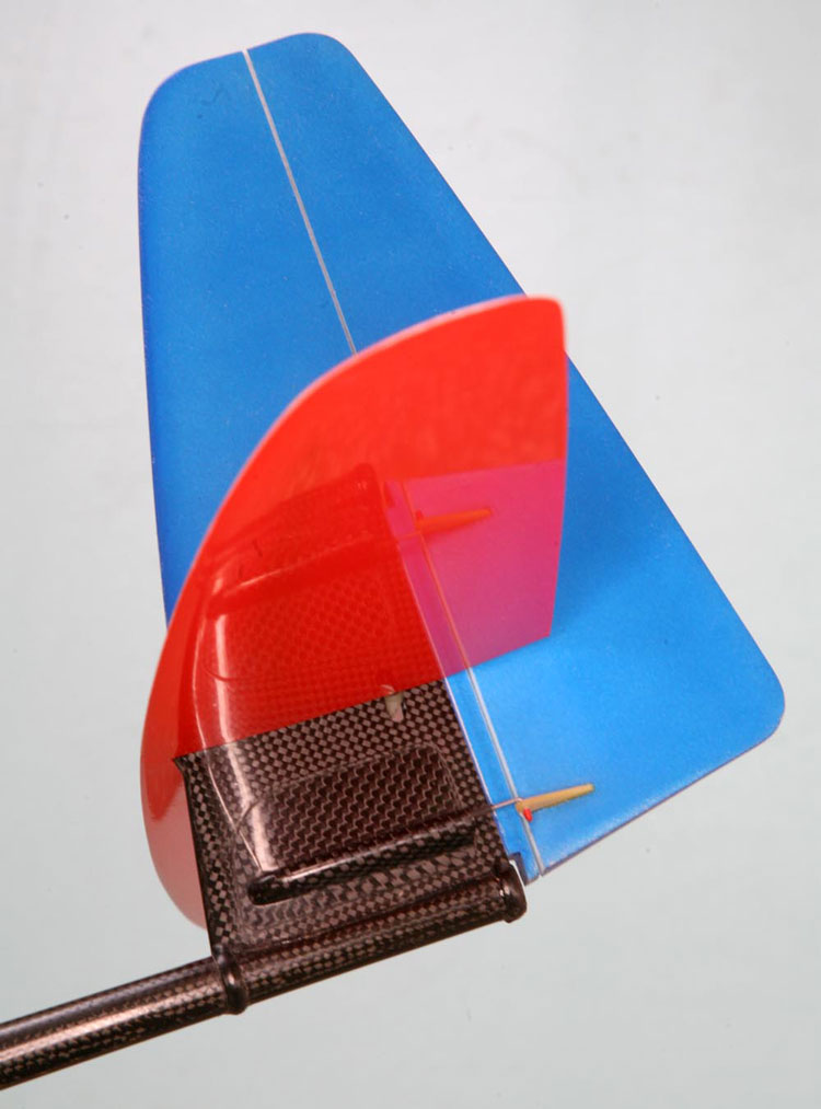 The attractive Kevlar fuselage and removable carbon canopy hatch are highly streamlined producing an extremely low drag and sleek pod, with fast convenient access to the flight battery. The molded-in wing pylon reduces interference drag and the long high modulus carbon tail boom and conventional cruciform tail ensure excellent handling. The molded tail assembly holds the superbly engineered all flying tail mount, with room for the elevator and rudder servos. The model is easily transported with its two-piece wings and removable tail.