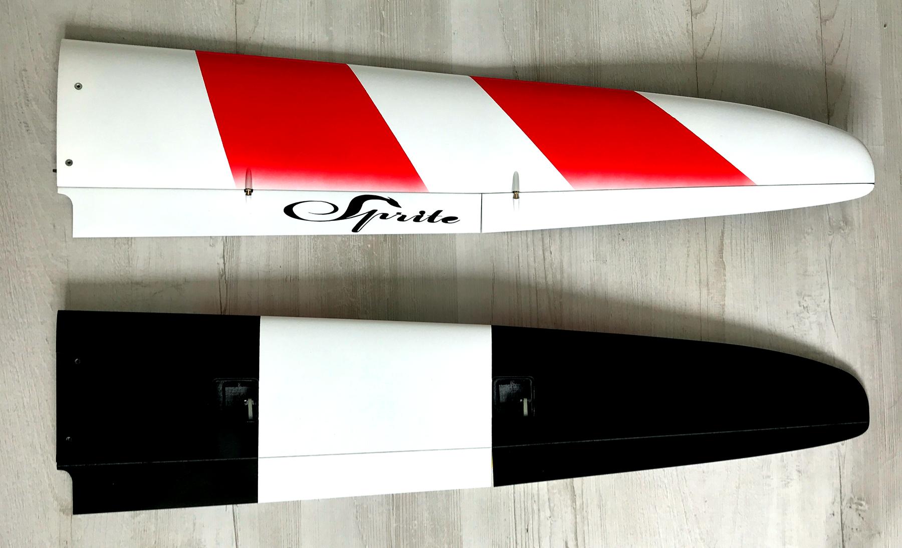 The Sprite Thermal-e version has a polyhedral wing with an EDA of 5 degrees, making it very easy to thermal, even at the limits of visibility. The AG40/41/42/43 section hollow moulded wings have carbon spars and large ailerons and flaps, extending the speed range at the low and high speed ends of the polar.