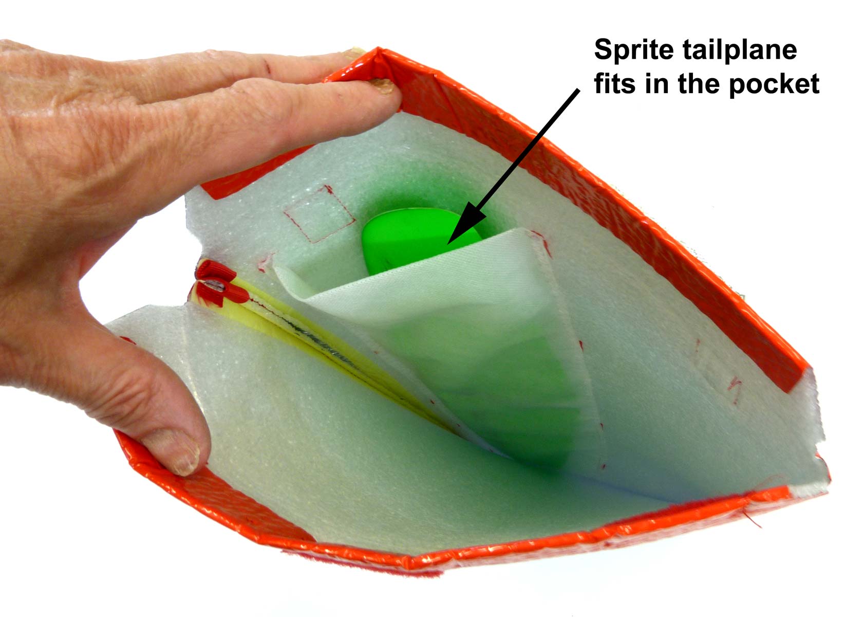Specially designed for Vladimir's Models range of 2m gliders they fit perfectly on all versions of the Sprite Hot and Sprite Thermal and also work with most other 2m wings. The two covers slip over the wings and fasten using a Velcro type hook and loop fastener in the middle. There is an inner picket for the Sprite tailplane too.