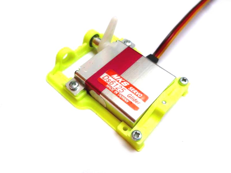 Very well made servo frame with the addition of a output shaft bearing. One frame will accommodate either the full size or mini 6125/6625 servos and will fit the left or right side of the servo. Only 1.5 grams heavier than the wooden version of this mount.