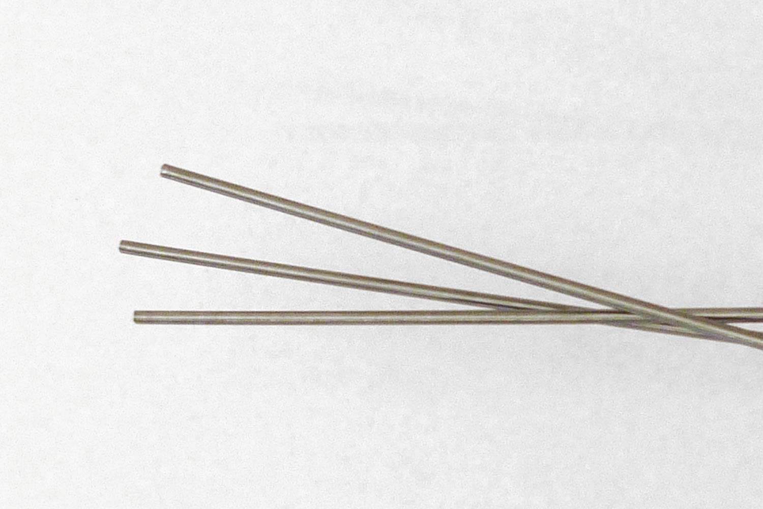 High tensile corrosion resistant 1.09 mm single strand stainless steel wire, sold in units of 1.5m/59", usually with a max length of 3m/118" per piece.