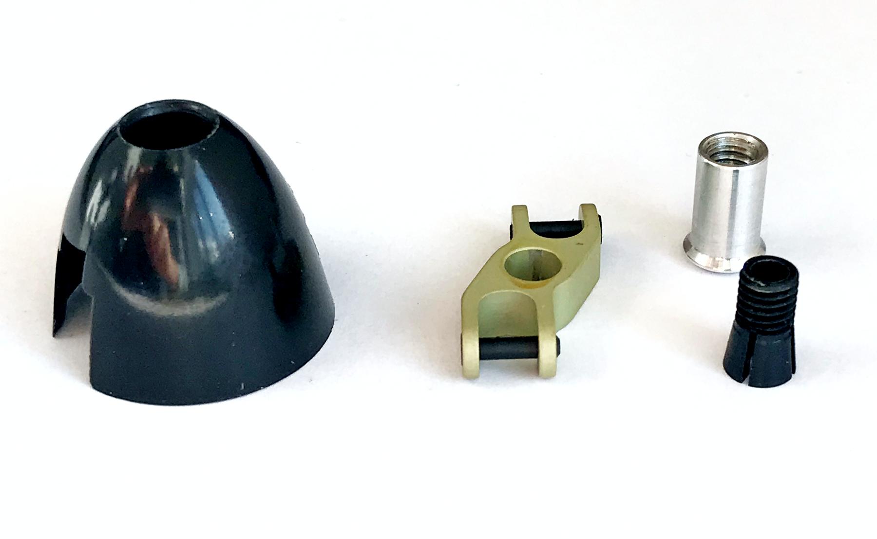 The Vladimir's Models VM25/3 Spinner is a great new spinner for small F5K type electric gliders. It has a diameter of 25 mm and is suitable for motors with a 3 mm output shaft, like the ADH300 ones we stock. The yoke/hub is CNC machined from aluminium alloy and has been anodised to increase the surface hardness and corrosion resistance. The black shock proof cone is molded from a glass/nylon composite.