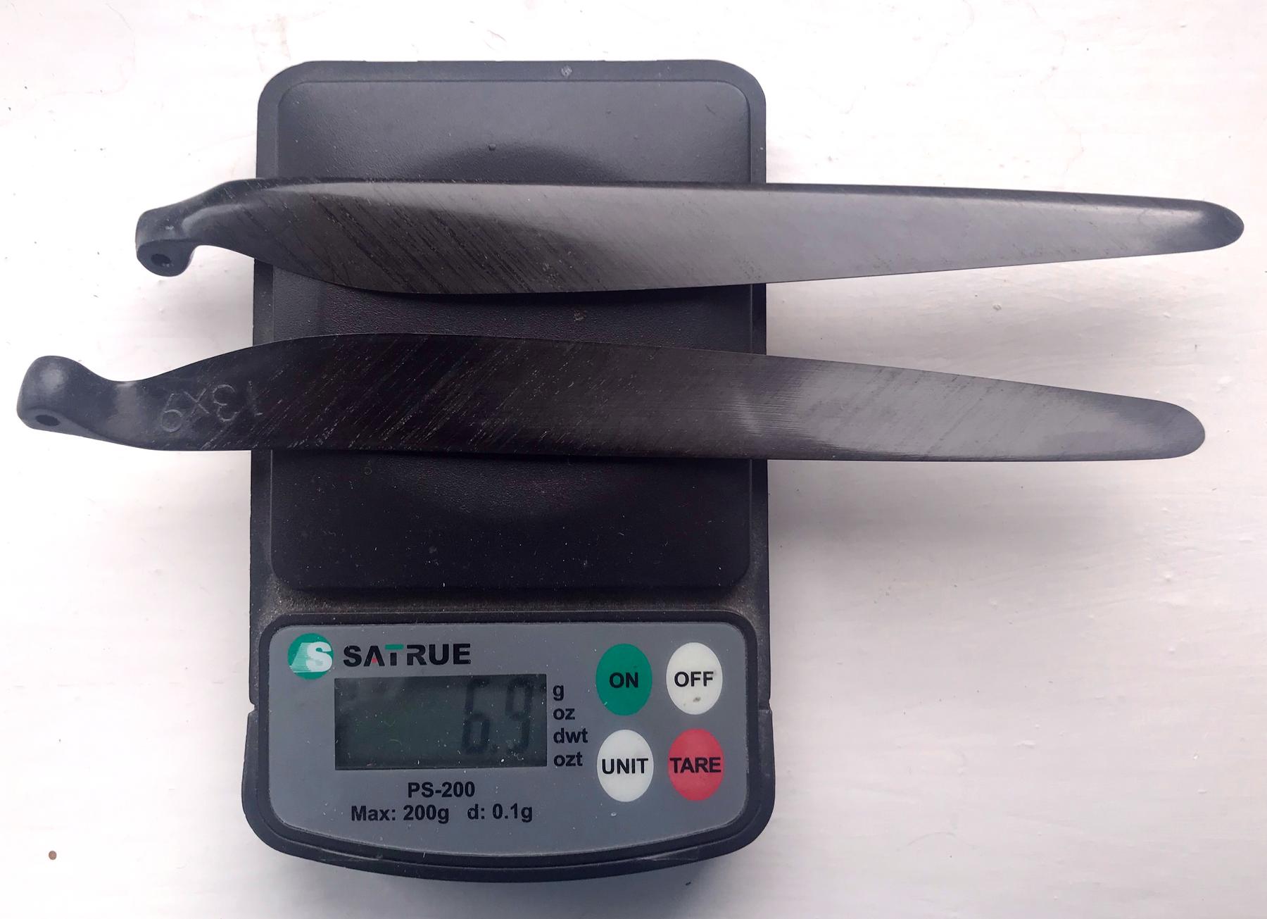 These blades are extremely thin (they have a higher aspect ratio), thinner even than GM blades. This allows larger diameter blades to be fitted without pulling too much current. This increases the propulsive efficiency of the powertrain. When used with VM Pro Spinners they will fold closer to the fuselage, and cause less drag than other props.
