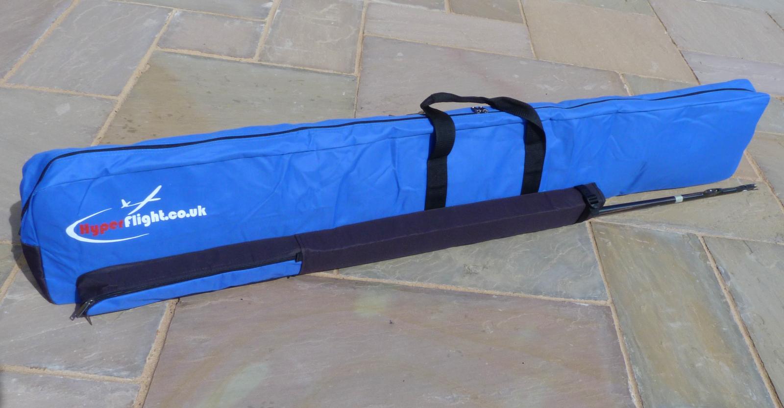 Nice, slim bag that is nearly perfect for hauling and protecting your glider. My only complaint is that there is no place to store tools. While there are pockets in the bag, these are designed to hold tail surfaces and if you put tools in with them, they slide around and damage the tail surfaces. What is needed is a large, lightly-padded, independent pocket that can be closed with Velcro to hold tools safely away from the delicate flying surfaces.