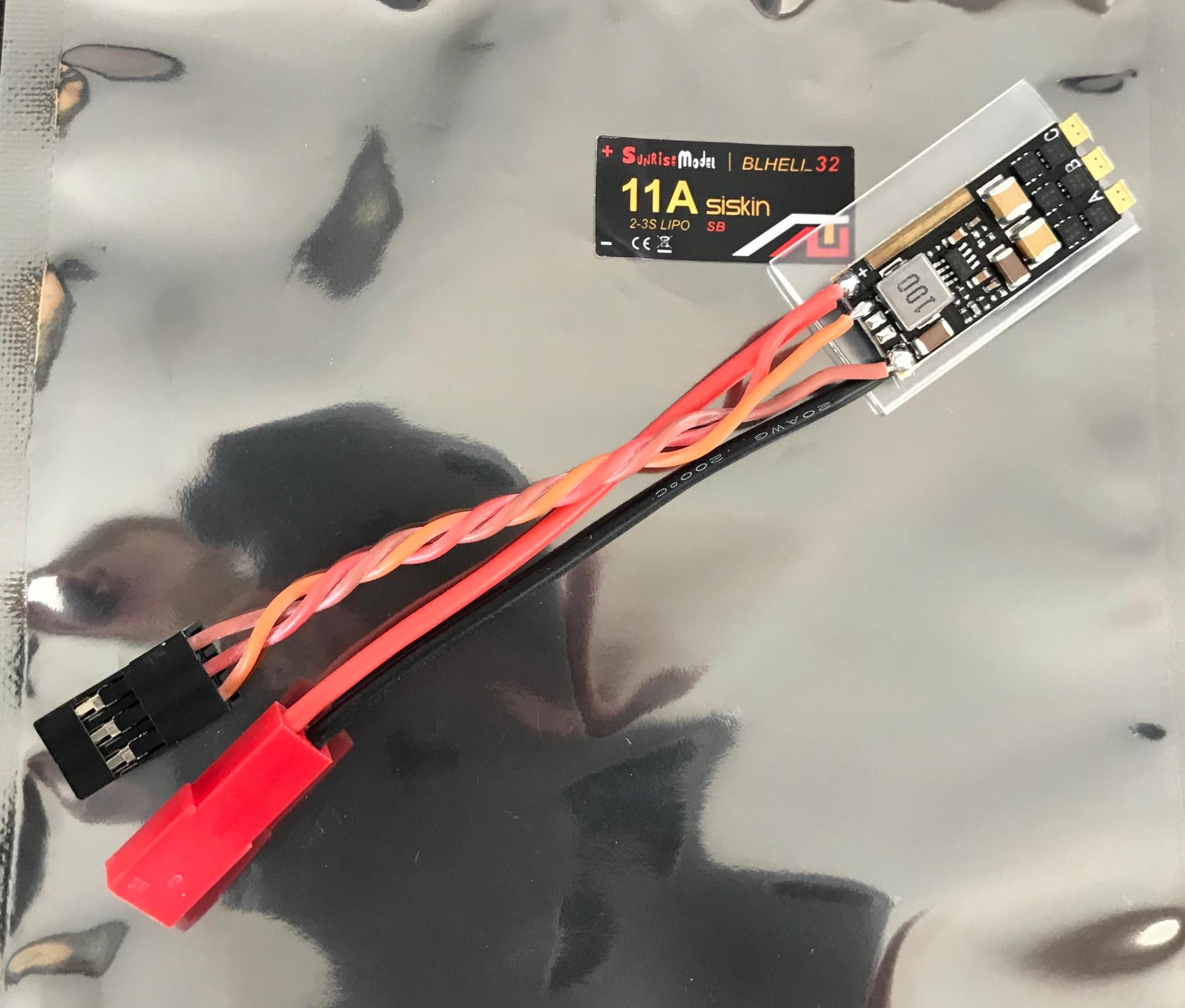 The HyperFlight 11A BLHELI-32 Siskin With Mini-JST Connector is an 11A brushless speed control suitable small electric models and powered gliders. Running the best firmware currently available, fully setup for glider operation with a good brake. This is exactly the same ESC as used on the Vladimir's Models Elf Pro & Spin powerset.
