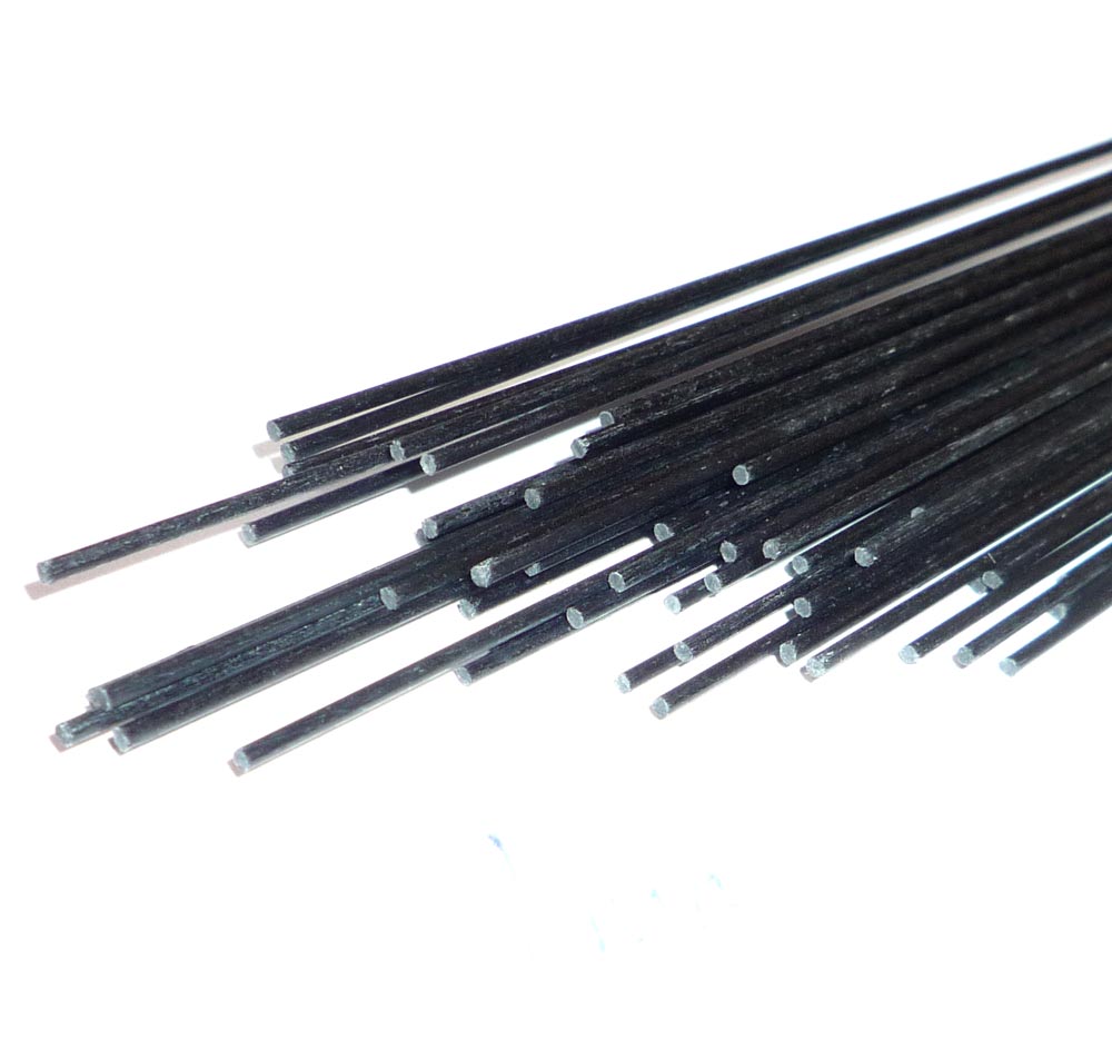 1.0 mm diameter high modulus carbon fiber rod available in various lengths. These pultruded carbon rods have a high fiber content of high modulus carbon in an epoxy matrix, making them extremely rigid and strong.