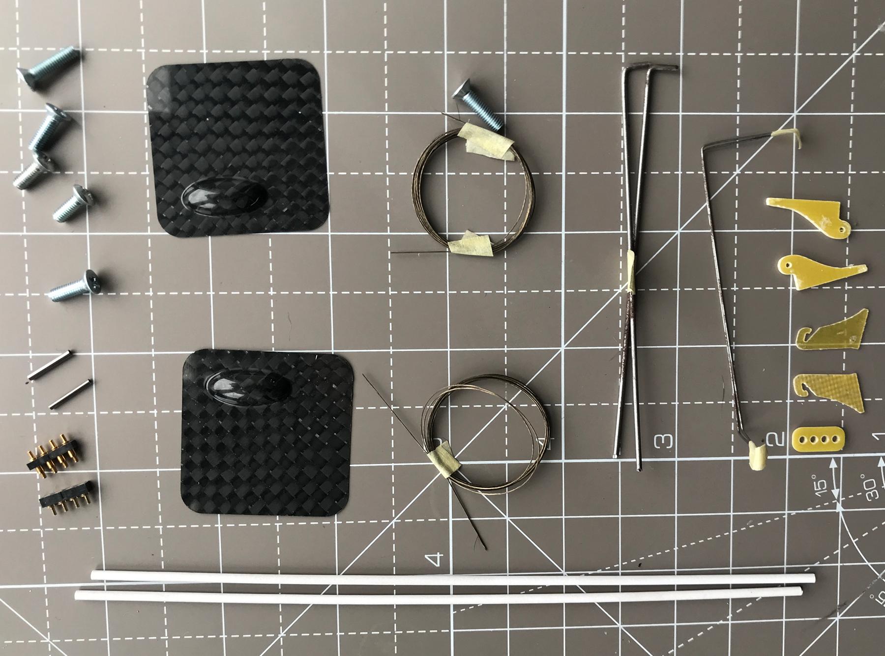 The E-Kite is supplied with a complete accessory pack including control horns, pull-cable, torque springs, pushrods and wing mounting screws.