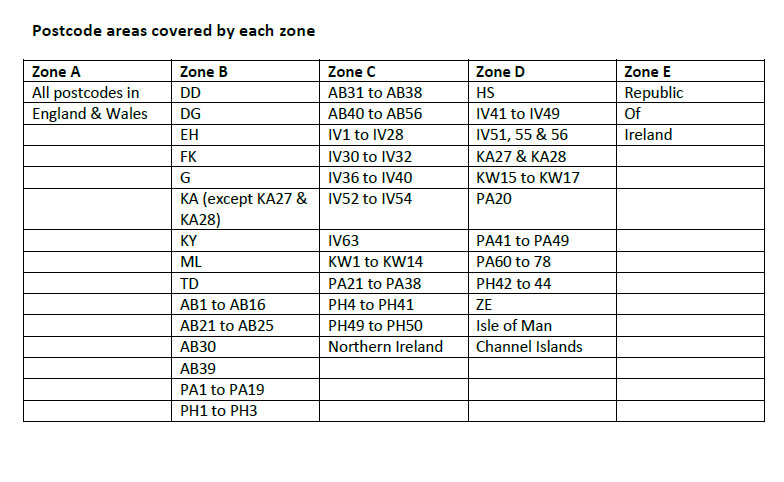 We cannot deliver long carbon items some parts of the UK without incurring extra charges. Add this product to the basket if you want a carbon item longer than 88 cm (the Royal Mail length limit) and live in the Scottish Highlands, Northern Ireland, an island, or your post code is listed in Zone C or D in the second image.