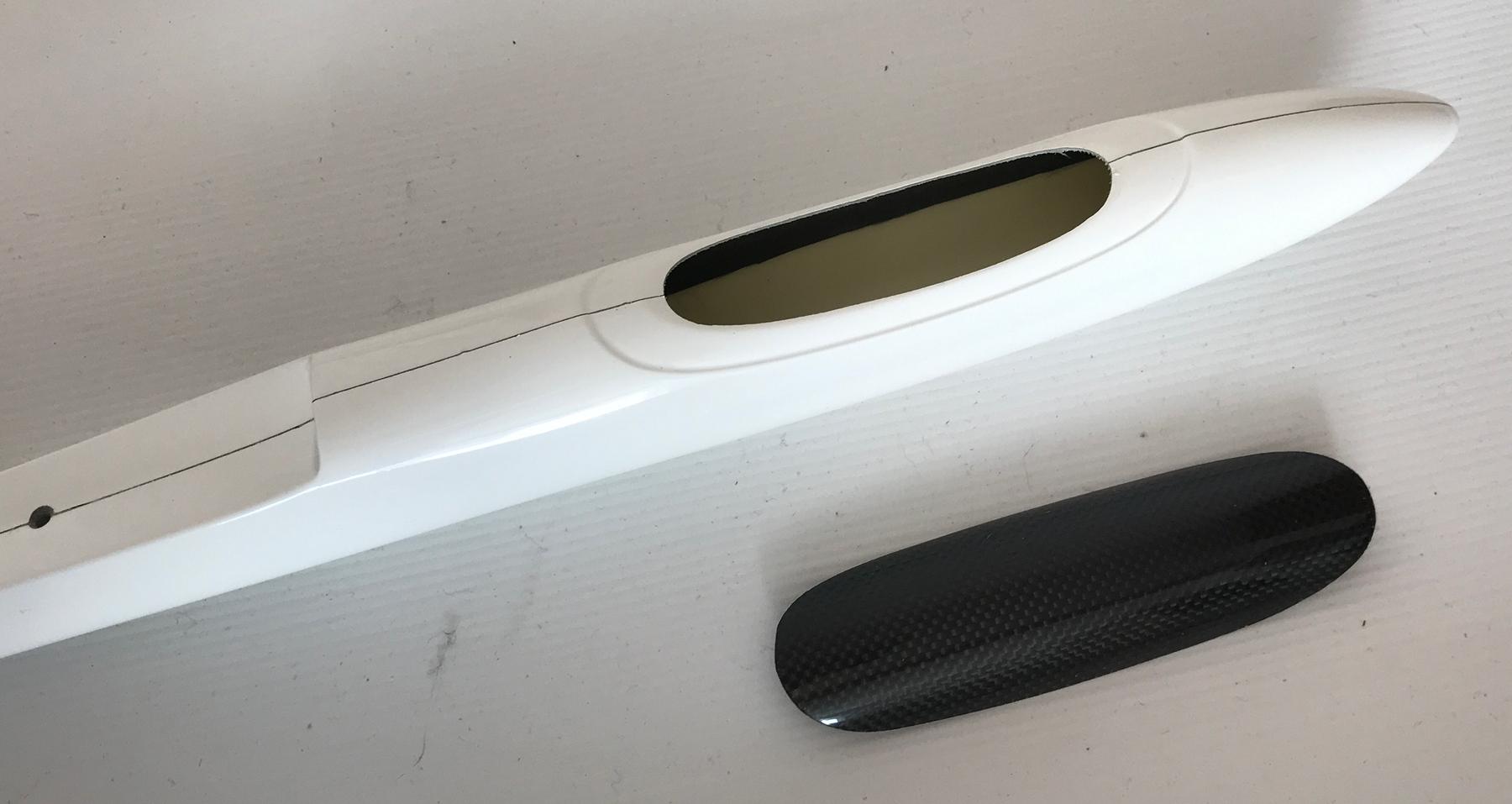 • Fin attached to boom in traditional DLG fashion with a slot / fiberglass / epoxy and a small stub below the boom (rather than the carbon pins in the kit)