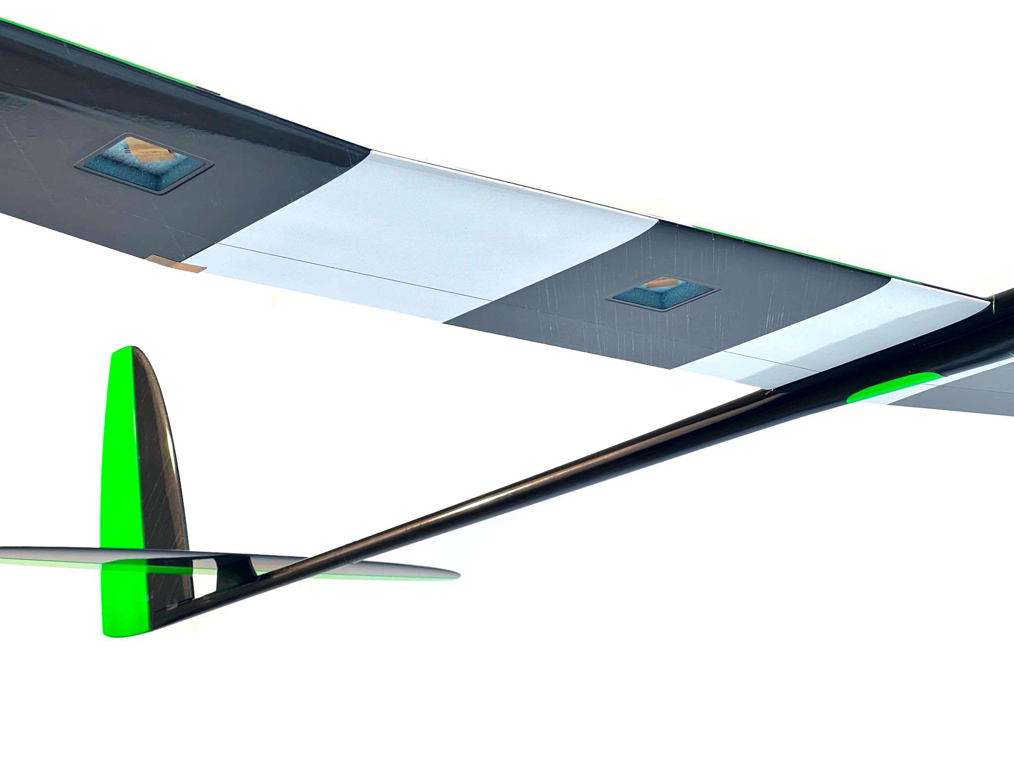• A high aspect ratio polyhedral wing with Drela airfoils optimised for F5J flying - the wing is especially stable in thermal turns, allowing the model to be climbed away from small, weak thermals with minimal control input.