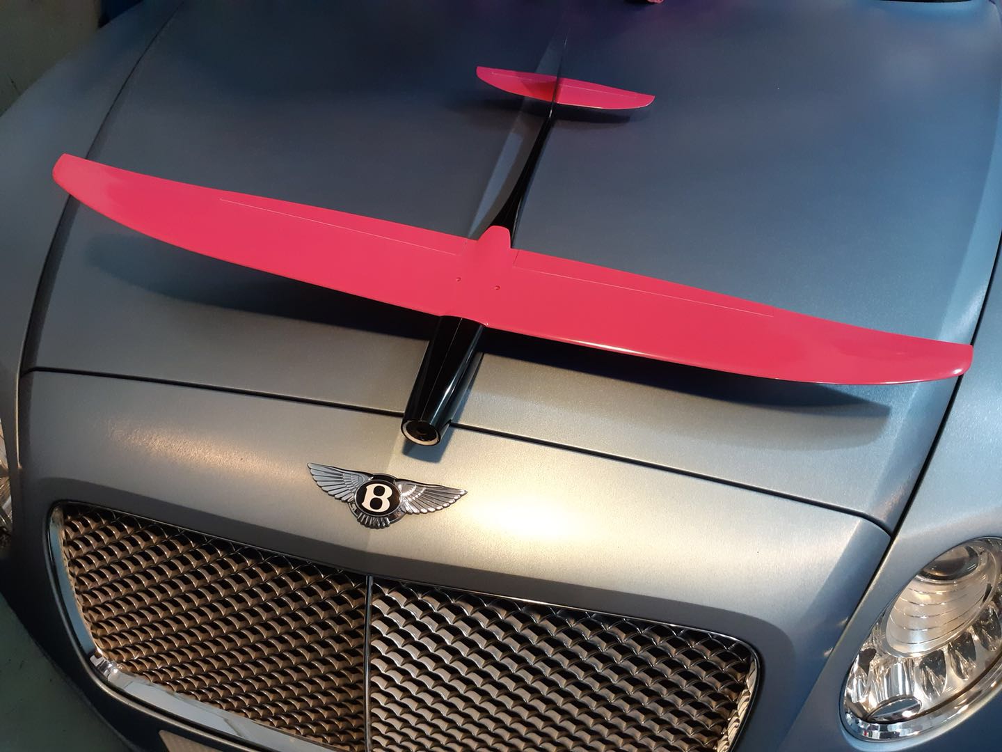 Unlike the Voodoo this model takes some time and care to set up but once done the rewards are there; the longer wingspan gives a broad scope of ability; a very light setup can glide off power for a while; launches and landings are very stable and predictable. Initially using a conventional inboard motor plus 38mm spinner I was unable to achieve absolute zero vibration throughout the whole rev range. After some research I decided to try something radically different and installed a Hypetrain 2207 Acro motor outboard of the firewall. Weighing a little over 30g but capable of producing around 2kg thrust, this quad motor is a revelation. With a balanced prop there is zero vibration throughout the whole rev range. Even with a light weight first run setup, speed is excellent, using a 2450Kv motor running a 5.5x4.5 prop. With a 1900Ah 3 cell pack I got around 8 minutes of mixed flying which could have easily been 10 minutes with more climbing and gliding.
