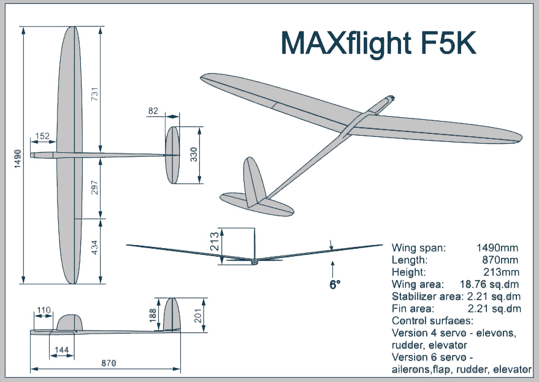 The MaxFlight F5K is an innovative 1.5m electric DLG type glider with two piece wings. With great performance and forgiving flight characteristics this may be the most advanced F5K model we have seen so far.