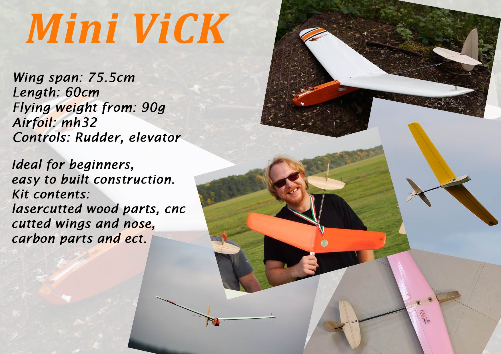 The Mini Vick is a great value built-it yourself foam and balsa 75 cm (30") span micro DLG. Its small size and low weight ensure great performance and lots of fun!