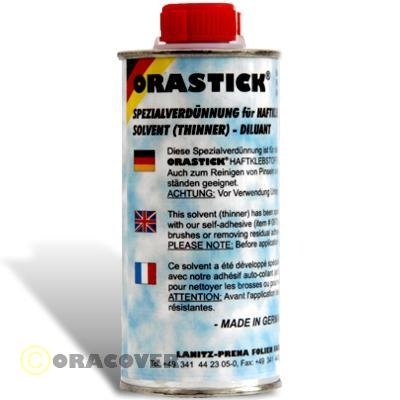 Orastick Thinners is used for thinning Orastick adhesive to reduce the viscosity, clean brushes, etc. Orastick Thinners can also be used to remove any glue residue that seeps out of seems in Oracover film covered models.
