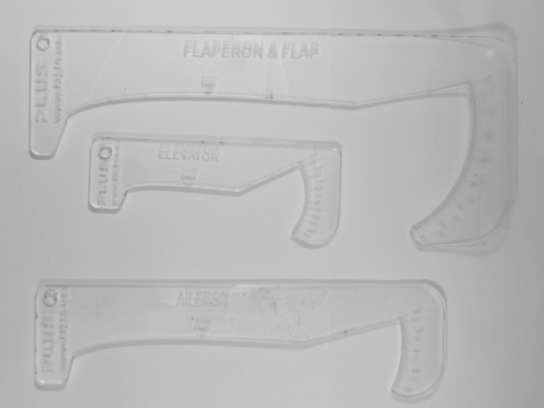 This product consist of three clear plastic (probably perspex) gauges to help in setting up the control throws for the Plus F5J model.