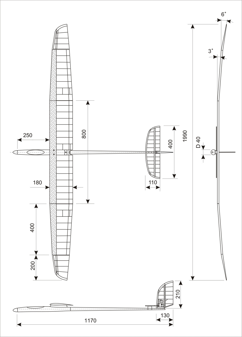 The new Pulsar Pro 2e is the latest version of the well regarded line of Pulsar 2m electric R/C soarers. The Pulsar Pro 2e is a very light high tech full house 2m electric glider that is optimised for sport flying. It uses the latest Ukrainian composite construction techniques married to a modern aerodynamic design with a wing utilising Mark Drela's slippery AG25 airfoil for best thermal duration performance. The low wing loading enables excellent thermal climb performance, with fully articulated wing controls allowing the model to be centred accurately in small turbulent thermals. The thin low drag airfoil works well over a surprisingly large speed range, allowing the model to be safely brought back after drifting far downwind.