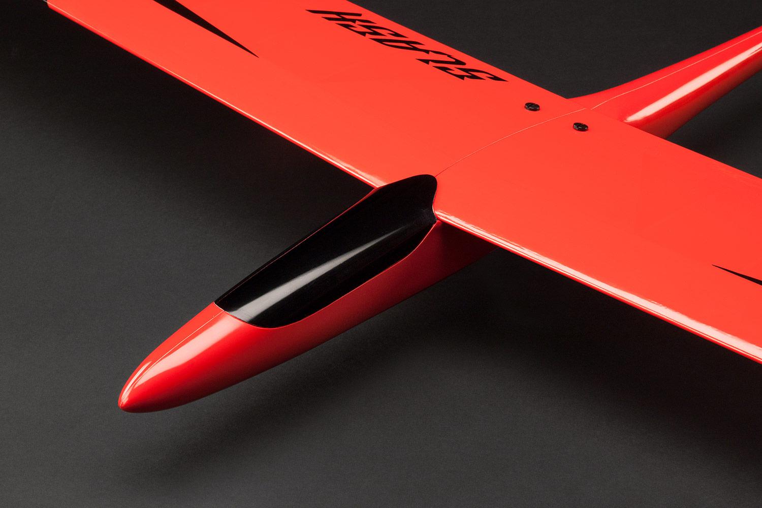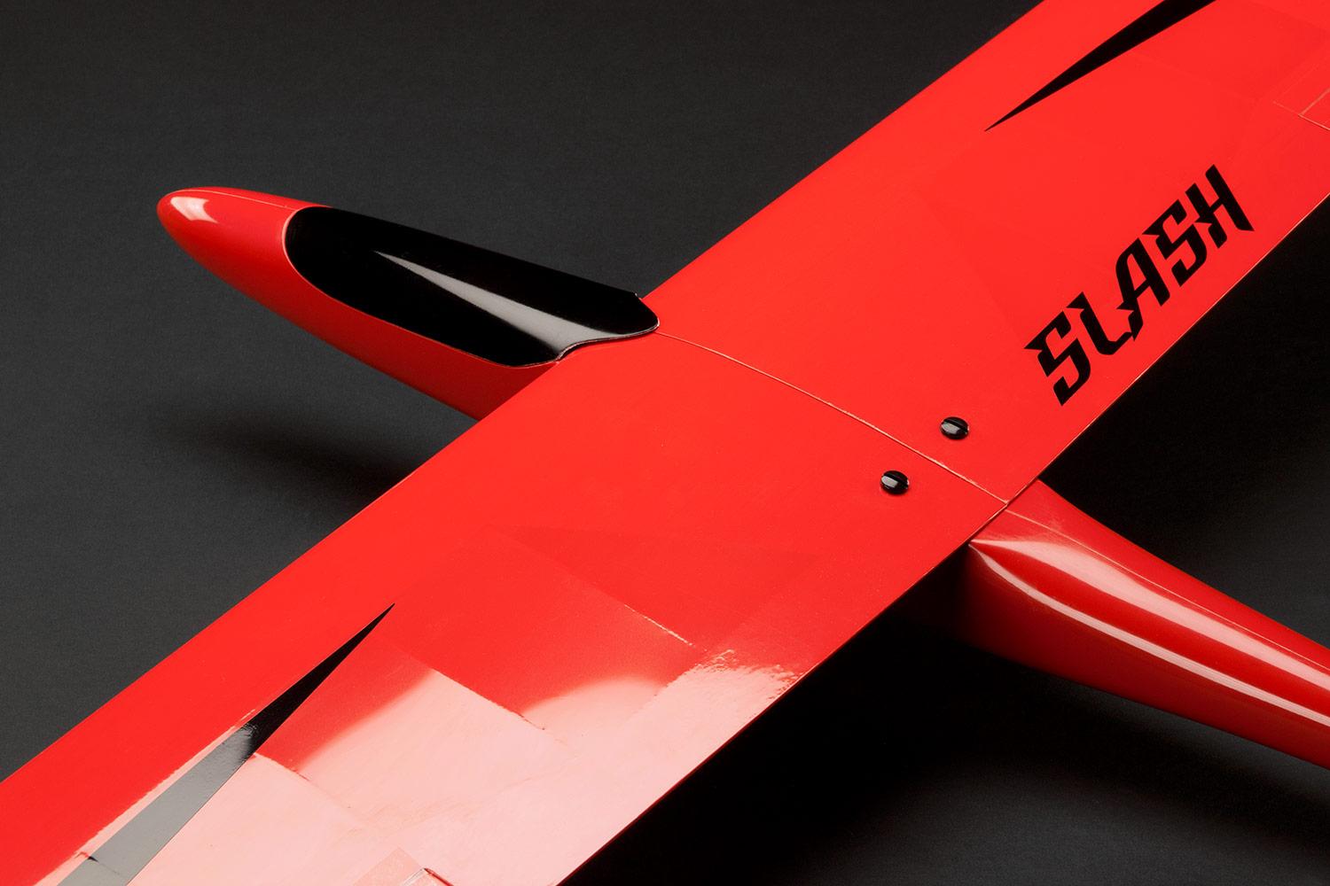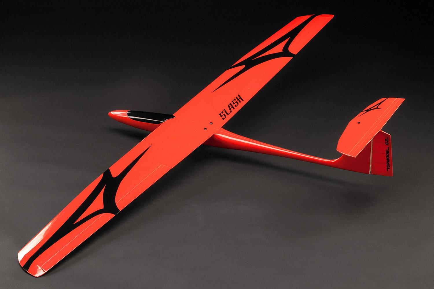 Slash is 1.61 m (63") span pure glider for sports flying. This airplane is especially designed for pilots who are looking for multipurpose fast sailplane. Strong enough for fast dives, but still light enough for thermal soaring. Slash has been re-designed for better flying characteristics with new classic balsa, built-up, D-box, rib/main spare wing design. Also included are the fiberglass gel-coated fuselage and balsa built-up tail parts. The synergy of low weight and strong structure is very unusual in a production sailplane and can only be achieved with careful attention to design and construction.