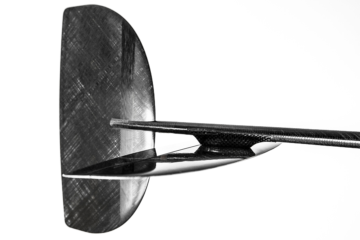 This beautiful carbon moulding is used to securely mount the tailplane (also called horizontal stabiliser or hoz stab) on all model of the Vladimir's Models Snipe discus launched gliders. The mount (also called a pylon) has a nice airfoil shape and is faired into a conic section for bonding to the glider's tailboom. The rear is open to act as a fairing and actuation slot for the elevator horn. Although designed for the Snipe it will work with many DLGs. It can be mounted above or below the boom, whichever the designer prefers.