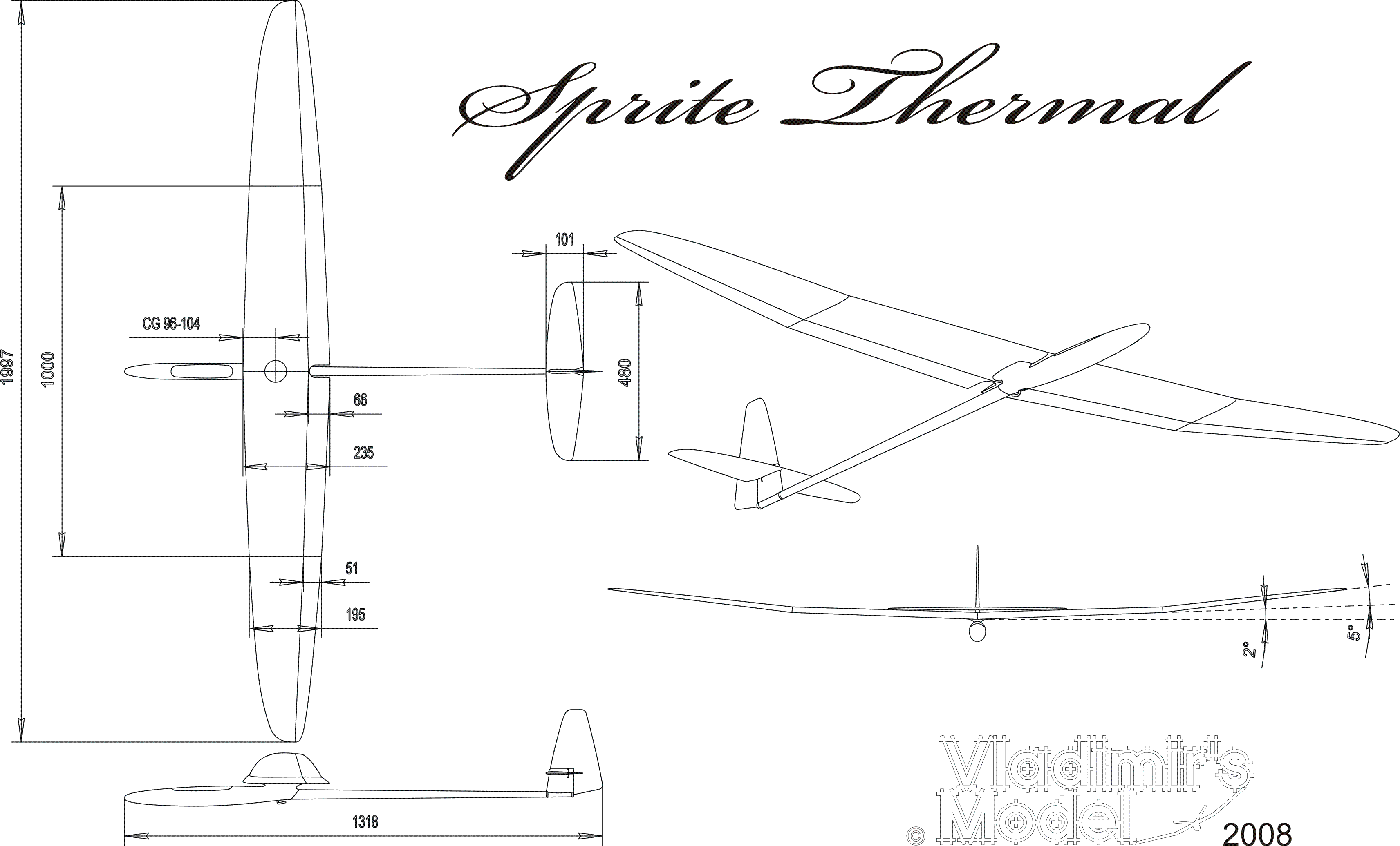 Sprite Thermal is a very efficient fully molded 2m glider intended mainly for competitive and sport thermal soaring. The advanced design by Dr Mark Drela gives excellent performance as a highly competitive 2m thermal soarer. By combining low weight and large ballast compartment the Sprite Thermal is equally at home in calm and windy conditions. Its well-balanced controls, excellent speed range, and outstanding thermal soaring capability make it particularly attractive to expert flyers who are looking for 3m performance in a conveniently compact 2m package.