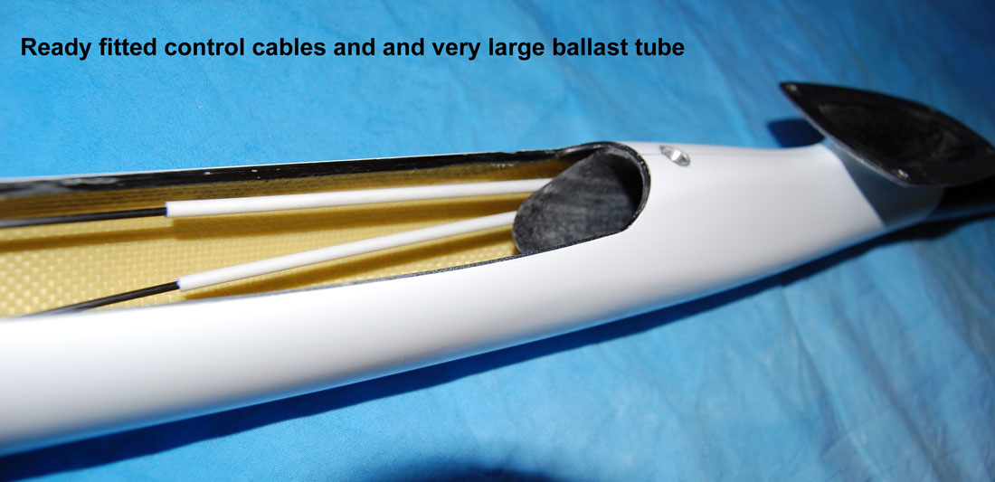 In addition to the exceptional design the other outstanding characteristic of the Sprite is the very, very, very complete build done at the factory, with the following items already fitted to perfection: canopy, large ballast tube, tow hook, tailboom, tailplane mount, and rudder and elevator Bowden cables. The only work required is gluing the fin and fitting the RC.
