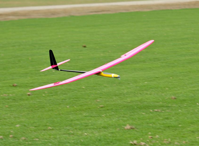 Caught a break on the weather today. After way too many days of steady rain, it cleared, giving me a chance to fly the Sprite. Went to my local community college flying site with a zip start and set up. Three flights and a little over an hour of air time later, I'm a believer. Launches were high and straight with the tow hook all the way back, and the ship needed very little trim to settle in. Great little plane. Agile, efficient, signals lift well, lands like a feather. This is a keeper. My 95 mm CG seems pretty close with just a little pull up in the dive test. One thing I did find was that after setting up aileron-rudder coupling proportional to my Supra, the Sprite wanted about 15% more. With that dialled in, turns were smooth and clean. --Jim