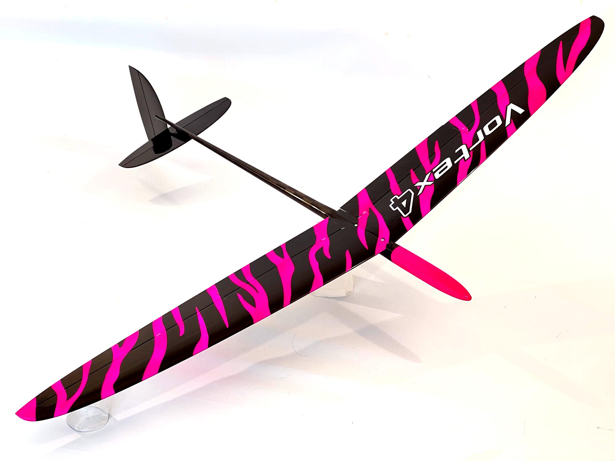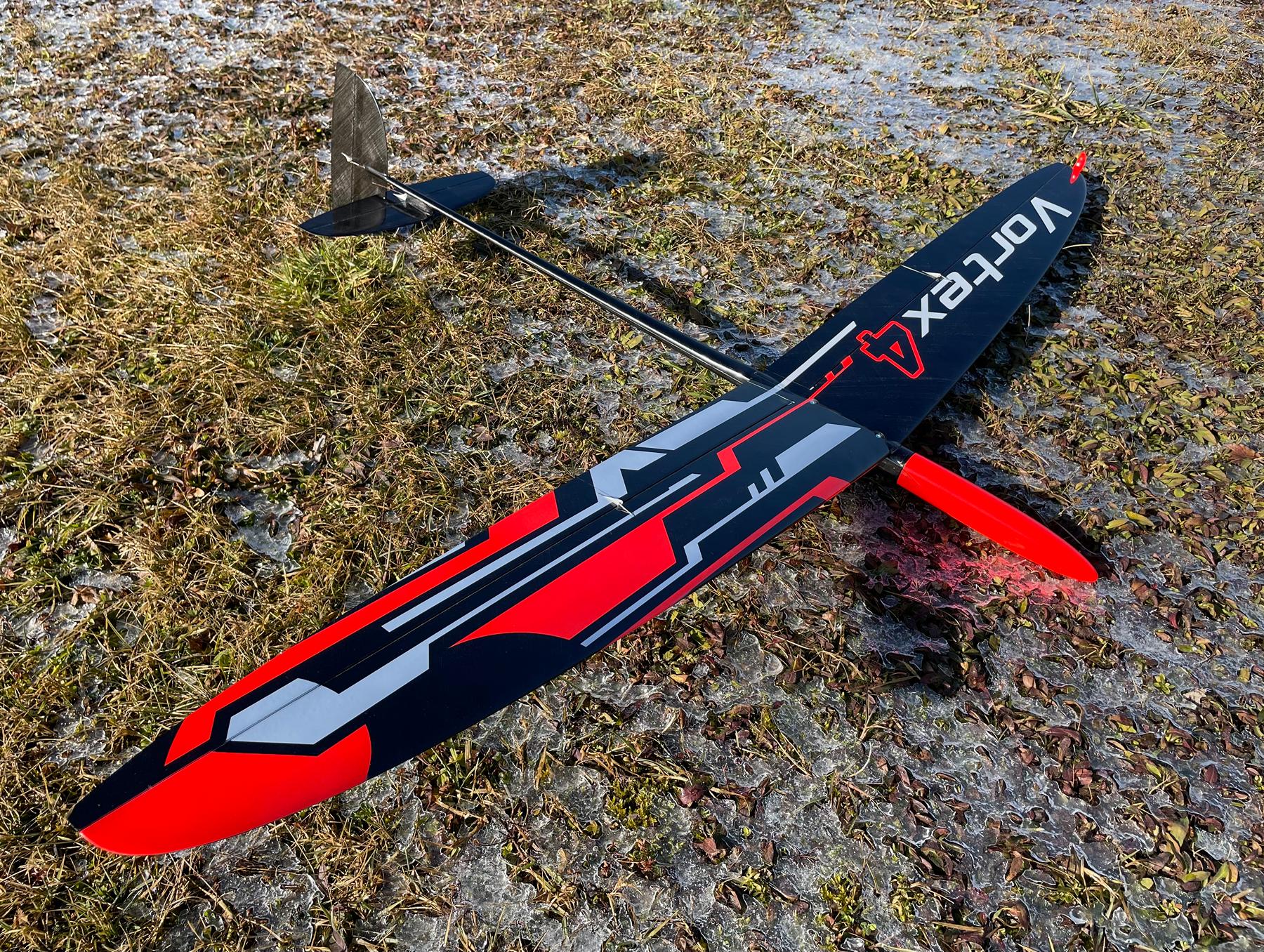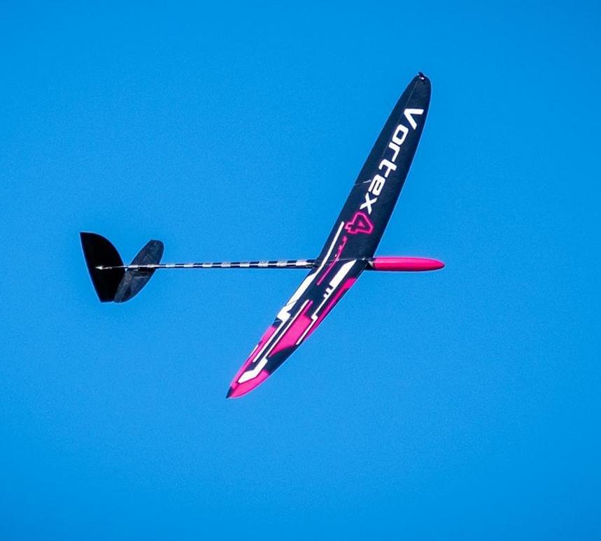 The ground breaking DS Composites Vortex 4 four servo wing DLG is prbably the most highly regarded DLG currently available. The extra controllability of the separate flap and aileron control surfaces gives greater manoeuvrability with less control surface drag in thermal turns and normal flight modes. However the ability to have crow braking on landing greatly improves control on approach and landing, reducing the likelihood of fumbled catches and resultant damage. Plus the thoroughbred low drag design of the Vortex 4 and excellent surface finish give high launches and an excellent glide angle.