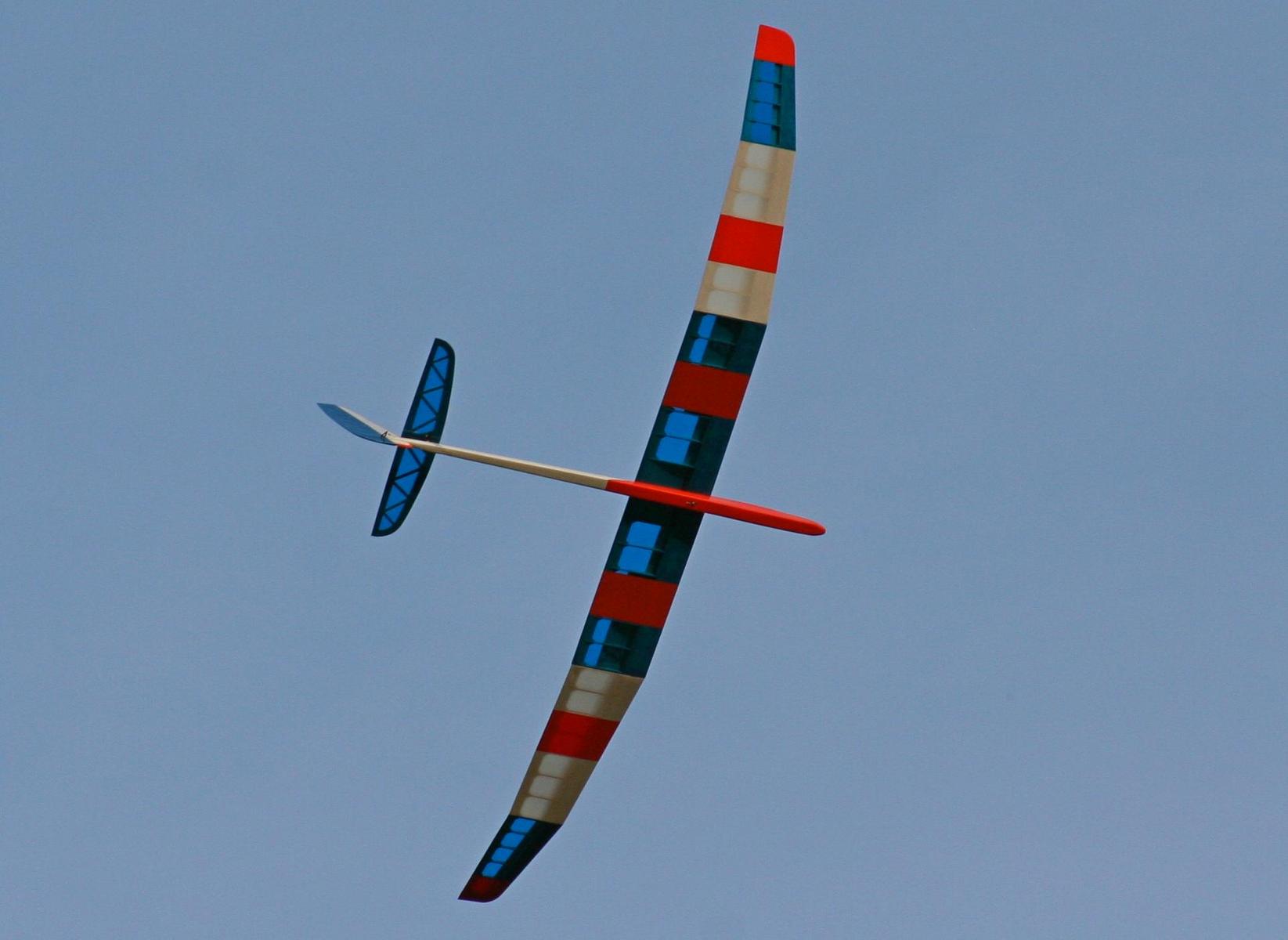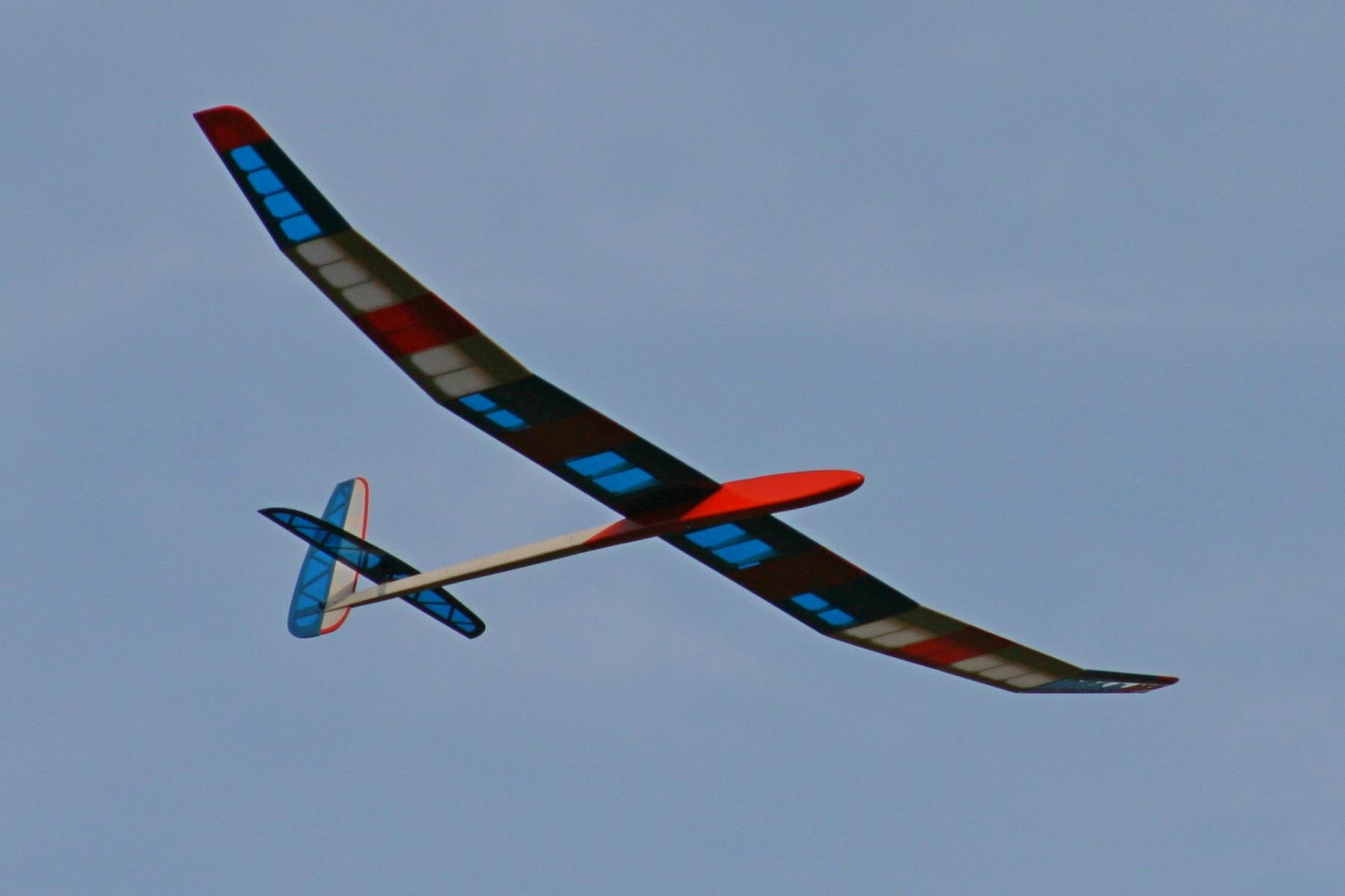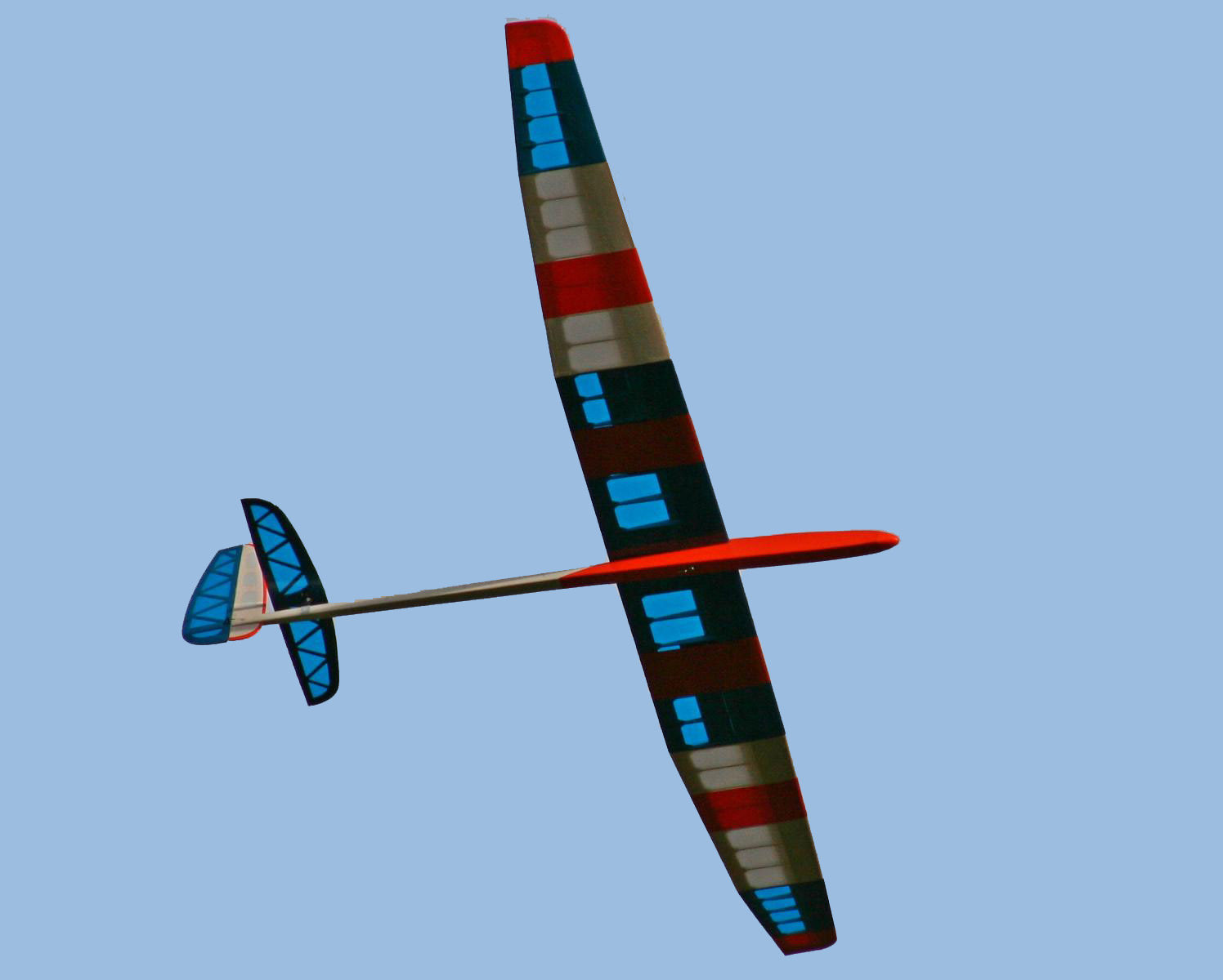 An initial hand toss produced over 250' flat glide with a neutral elevator. A couple hand glides and minor trimming and it was to the highstart. This bird just wants to fly! Right up the highstart with no pilot input. It will penetrate fine in about a 10 mph breeze but I feel it will probably need a bit of ballast with higher wind speeds. In dead calm it just floats...just a gentle very flat glide. Very relaxing. The two big spoilers will bring it down in a hurry, even still no violent downward pitching with a little up elevator programmed in. I have nothing but good to say about the flight characteristics. It's a blast just to throw it and make a big circle back to where you're standing. I have not yet had any good thermal conditions to fly in but I have no doubt, it will signal lift well and climb like a hawk.
