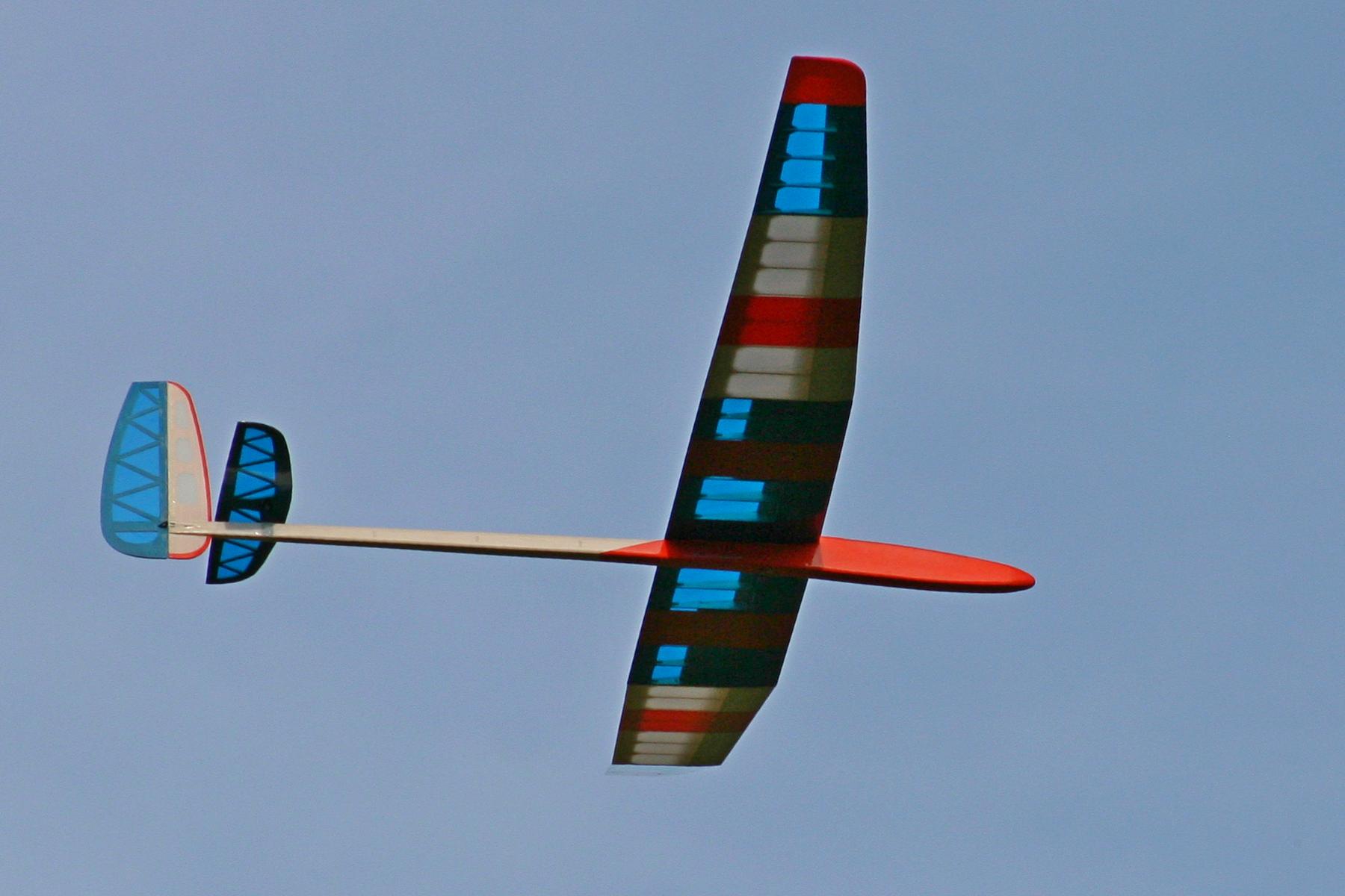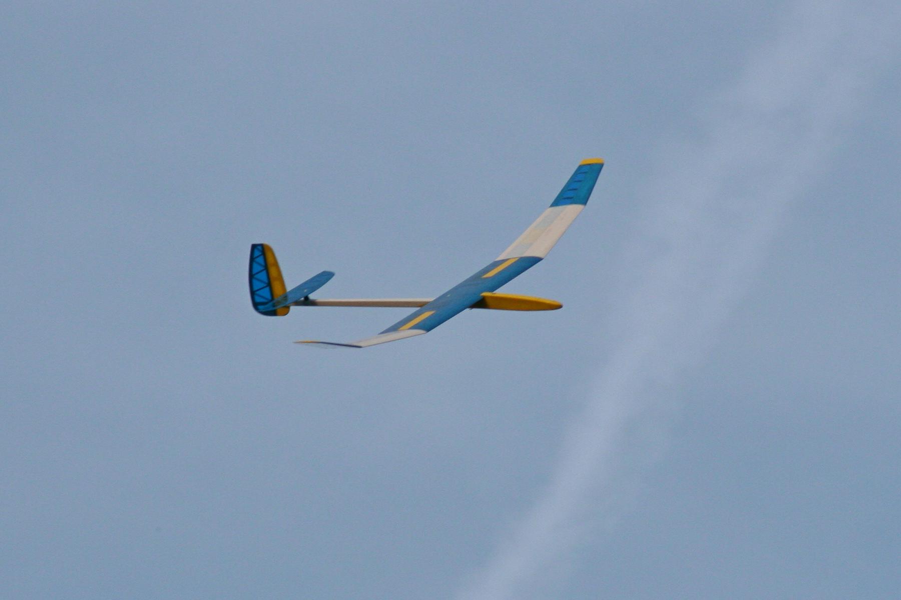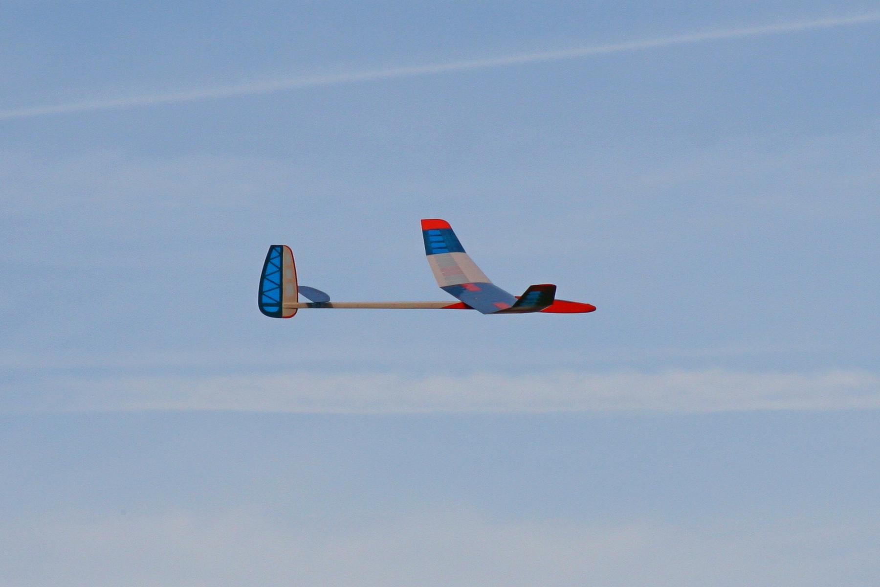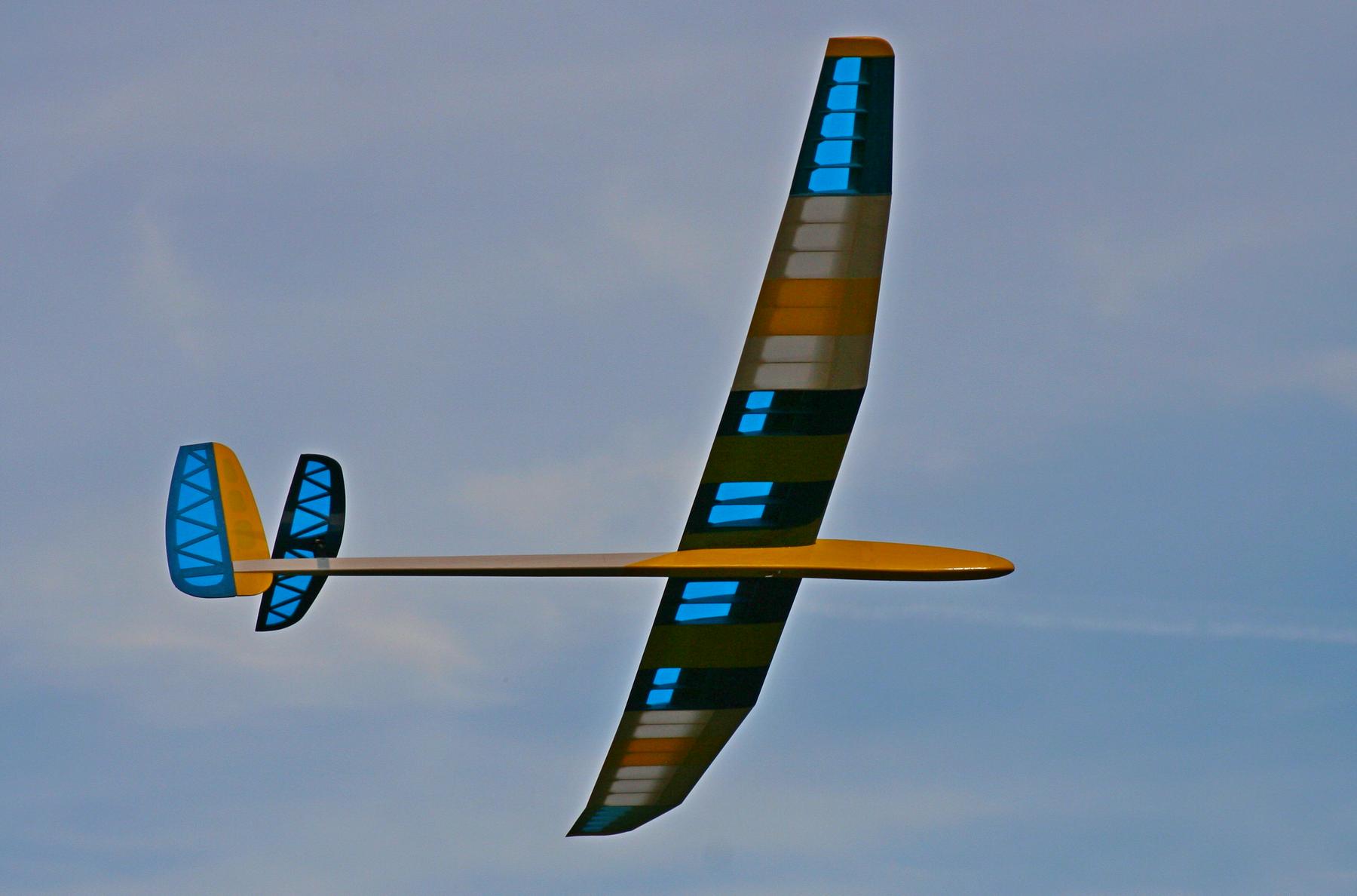 An initial hand toss produced over 250' flat glide with a neutral elevator. A couple hand glides and minor trimming and it was to the highstart. This bird just wants to fly! Right up the highstart with no pilot input. It will penetrate fine in about a 10 mph breeze but I feel it will probably need a bit of ballast with higher wind speeds. In dead calm it just floats...just a gentle very flat glide. Very relaxing. The two big spoilers will bring it down in a hurry, even still no violent downward pitching with a little up elevator programmed in. I have nothing but good to say about the flight characteristics. It's a blast just to throw it and make a big circle back to where you're standing. I have not yet had any good thermal conditions to fly in but I have no doubt, it will signal lift well and climb like a hawk.